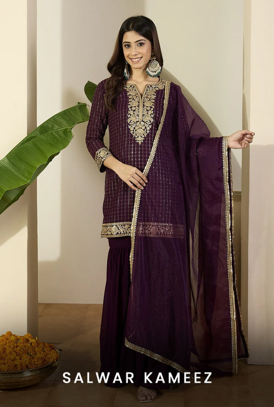 Salwar Kameez is ordinally a 3-piece clothing set which includes a Kameez which is the top, a salwar which is a pant/bottom, and a scarf style dupatta which is to be draped around the product. Why are we explaining this? Because we want you to be familiar with the attire even before you think of buying a Salwar Kameez online. Salwar Kameez is the most comfortable Indian clothing which is worn as daily wear, for special occasions, and festivities. The design, artwork, fabric, and styles are taken into consideration before choosing a material. Salwaar Kameez collection at Inddus is a well-crafted section where you can find ethnic wear for all types of occasions. Our designers take extra care to design fusion outfits because this Indian-style veneer has undergone a lot of change since its inception. We have a vast variety of Salwar Suits. Anarkali Suits, Punjabi Suits, Churidar Suits, Palazzo Style, High Slit, Gown Anarkalis.
