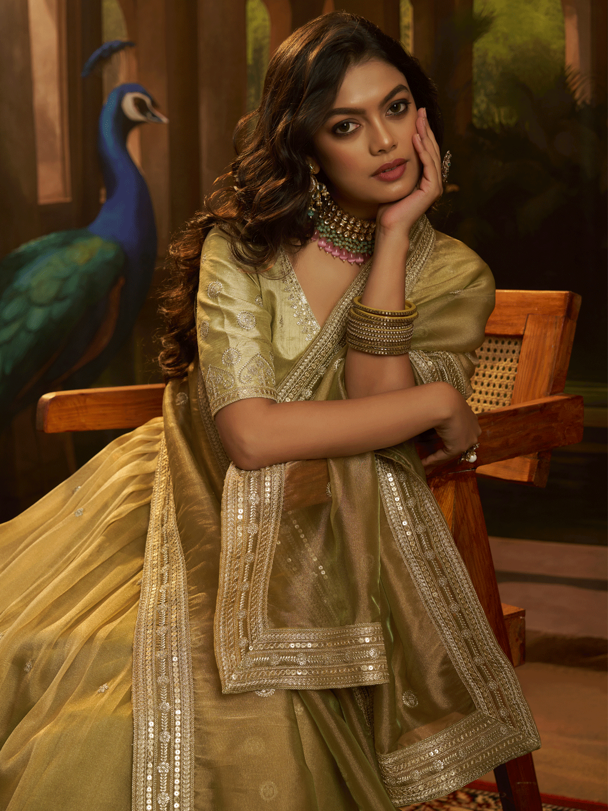 Elevate your festive wardrobe with this exquisite beige lehenga choli, meticulously crafted from premium art silk. The ensemble showcases intricate zari sequins embroidery that captures light beautifully, making it an ideal choice for weddings and celebrations. The semi-stitched construction offers customizable comfort and fit, while the delicate organza dupatta provides an elegant drape that completes the traditional silhouette. This thoughtfully designed piece seamlessly merges contemporary craftsmanship with timeless ethnic appeal, ensuring you radiate confidence and grace at any special occasion.