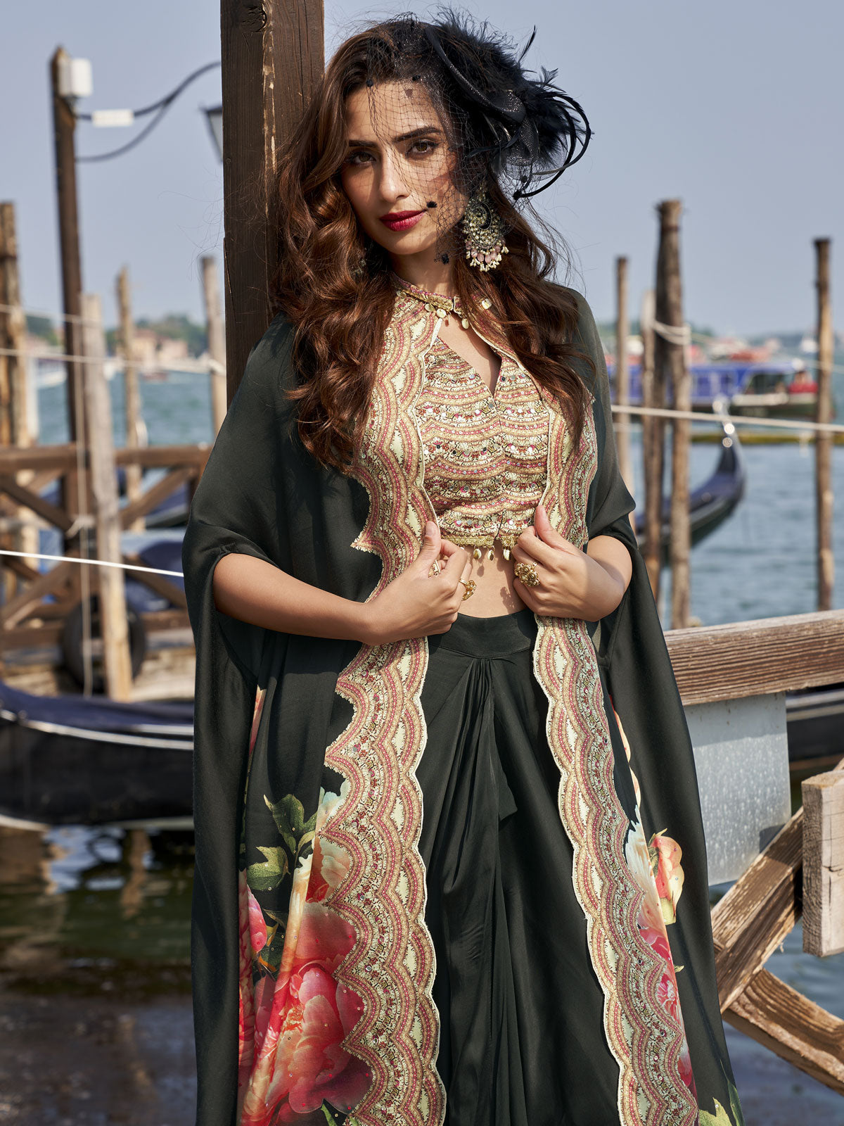 Elevate your ceremonial wardrobe with this sophisticated black crepe silk salwar suit, expertly designed to make a refined statement. The luxurious fabric drapes elegantly while the intricate embroidered detailing adds depth and character to your ensemble. This piece seamlessly balances traditional craftsmanship with contemporary aesthetics, perfect for special occasions. Includes a coordinating dupatta to complete your look with grace and poise.