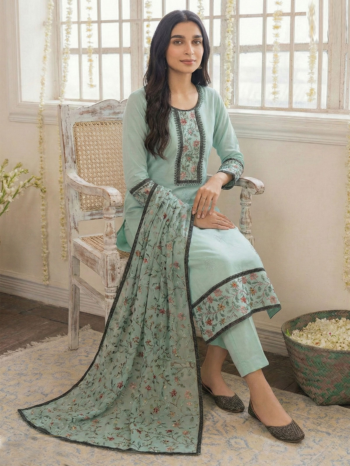 This contemporary pant style suit in striking blue georgette delivers sophisticated elegance for both festive celebrations and refined casual occasions. The luxurious fabric drapes beautifully while maintaining comfortable wear throughout the day. Intricate thread embroidery and shimmering sequin detailing create captivating textural depth, catching light with every movement to elevate your presence. The expertly tailored pant silhouette offers a modern, flattering fit that transitions seamlessly from traditional events to contemporary gatherings. Complete with a coordinating dupatta, this ensemble provides a polished, put-together look that requires minimal styling effort. Perfect for those seeking versatile sophistication with meticulous craftsmanship and refined aesthetic appeal.