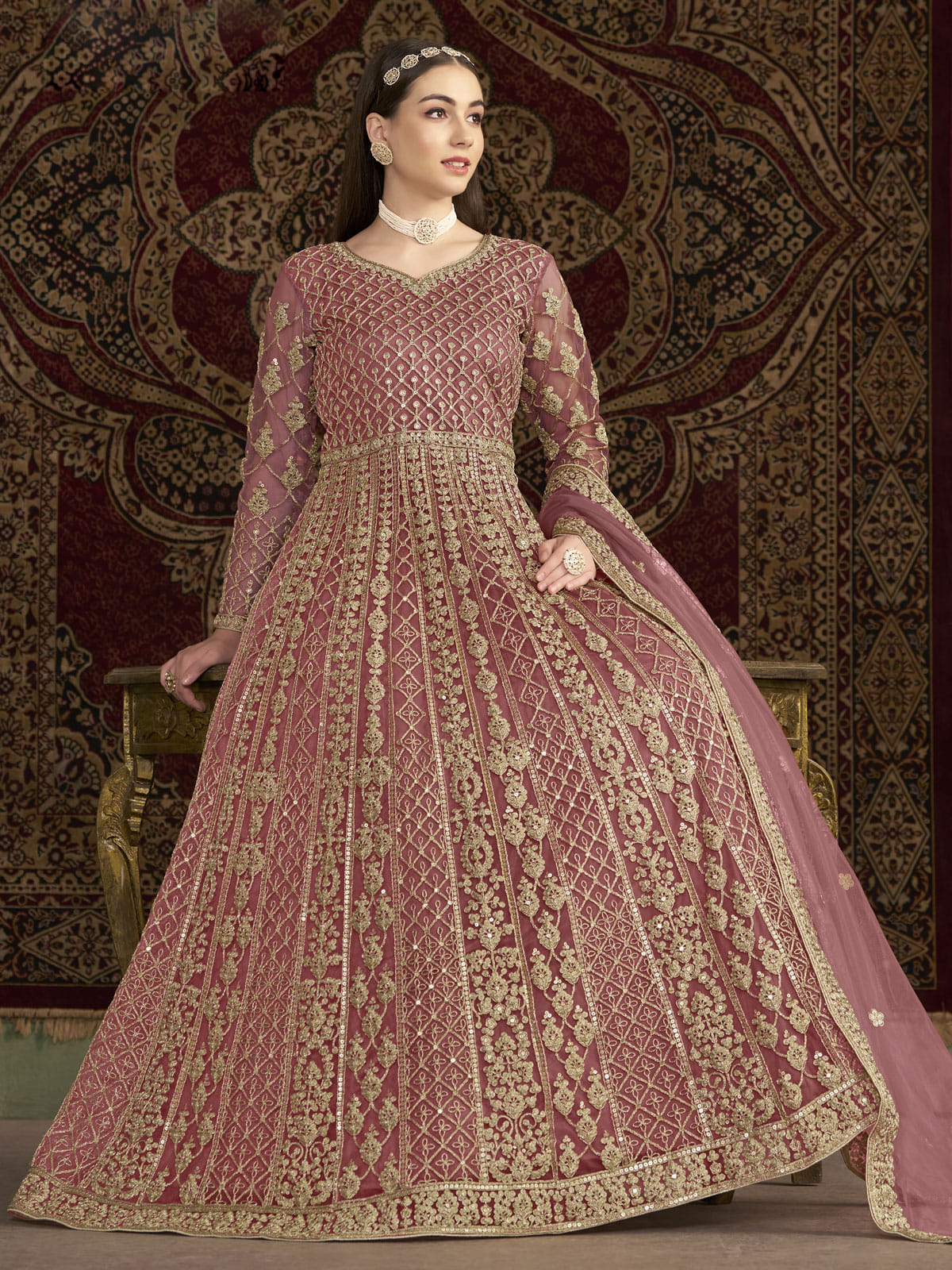 Expertly crafted for the festive season, the Blush Pink Anarkali Suit dazzles with traditional embroidery in cording reshamkari zari and sequence work. The premium net top, silk santoon pants, and heavily embellished dupatta create a glamorous look. Pair with golden jewelry and stilettos for the perfect wedding/festive attire.