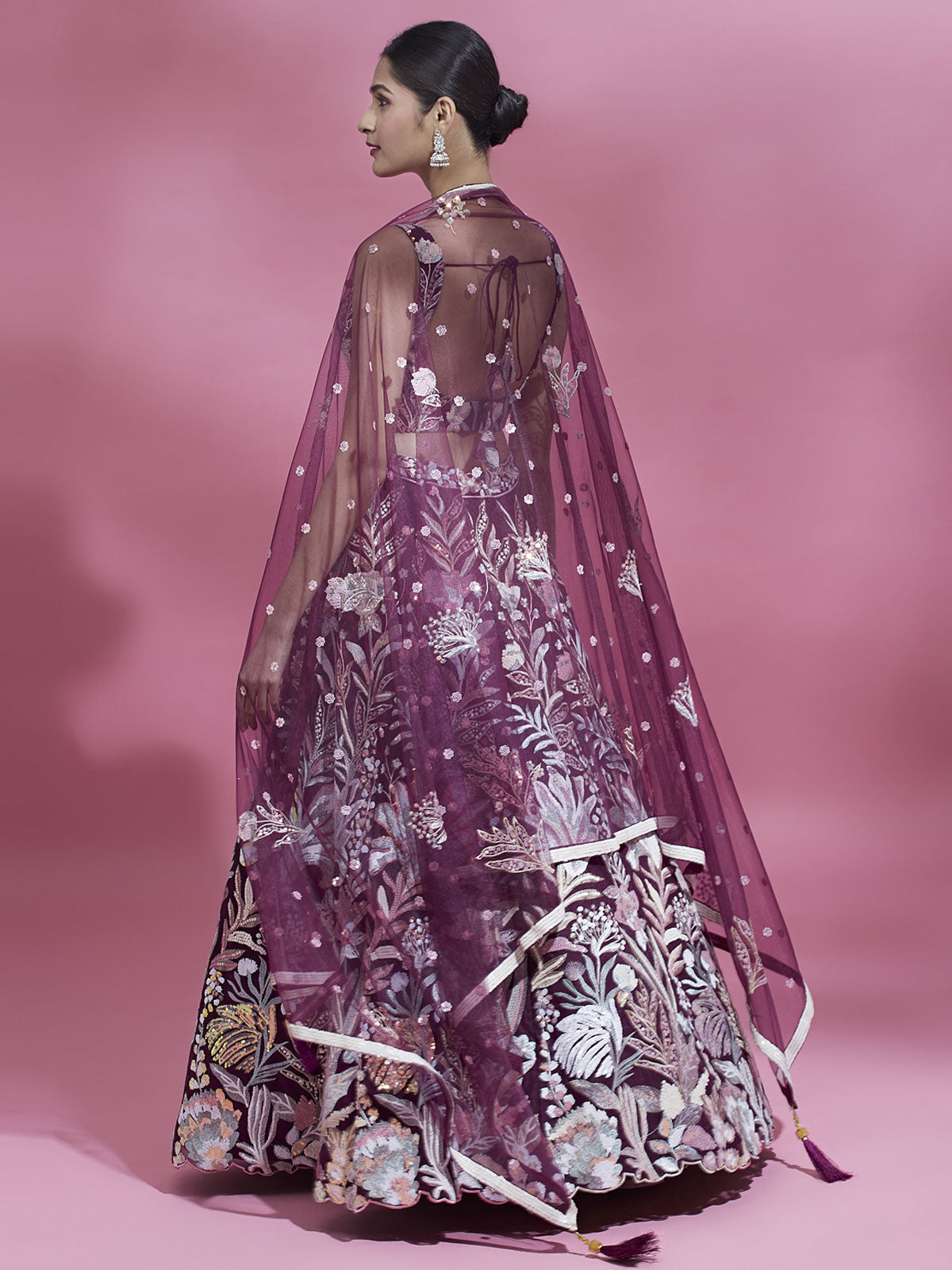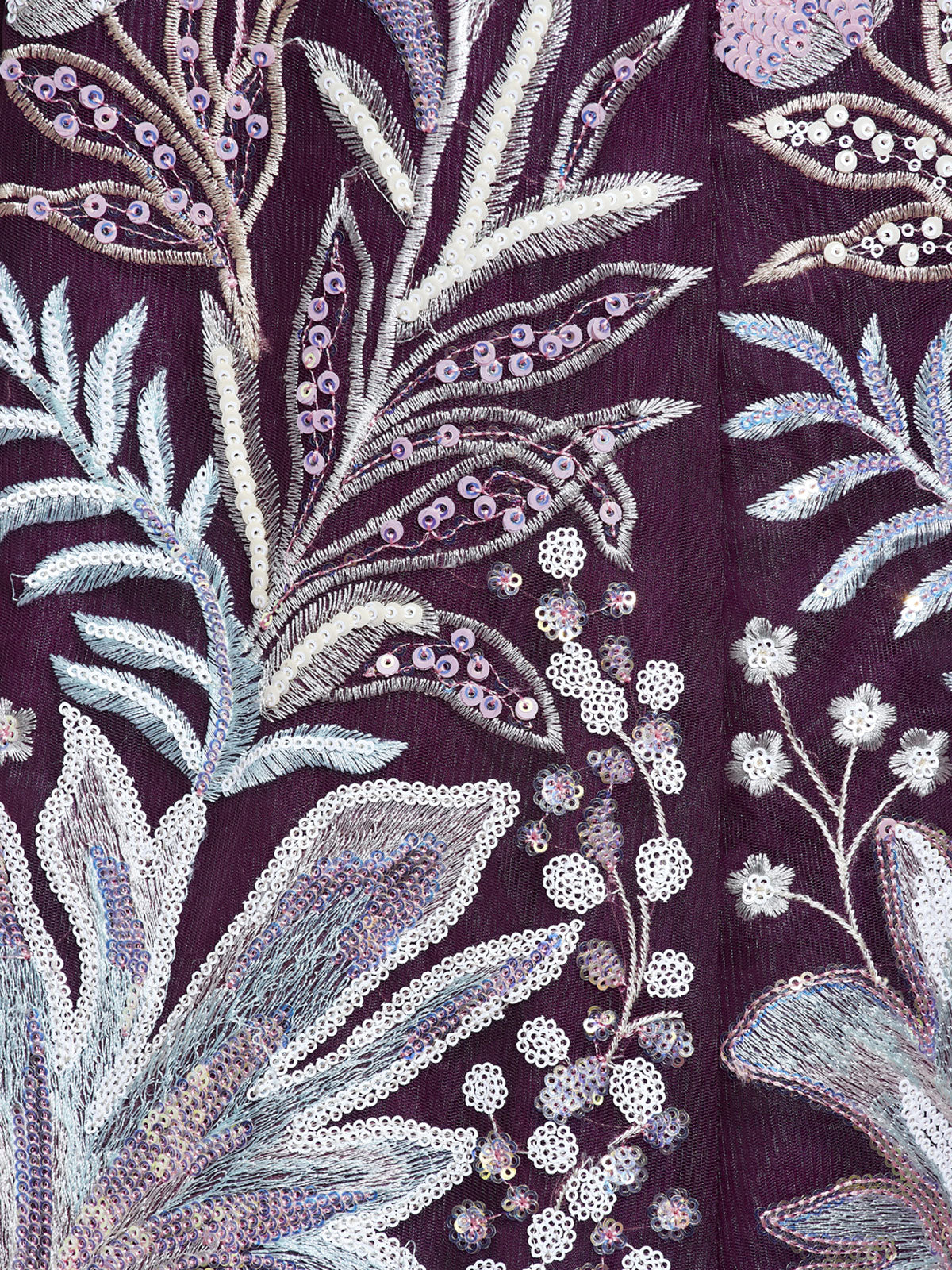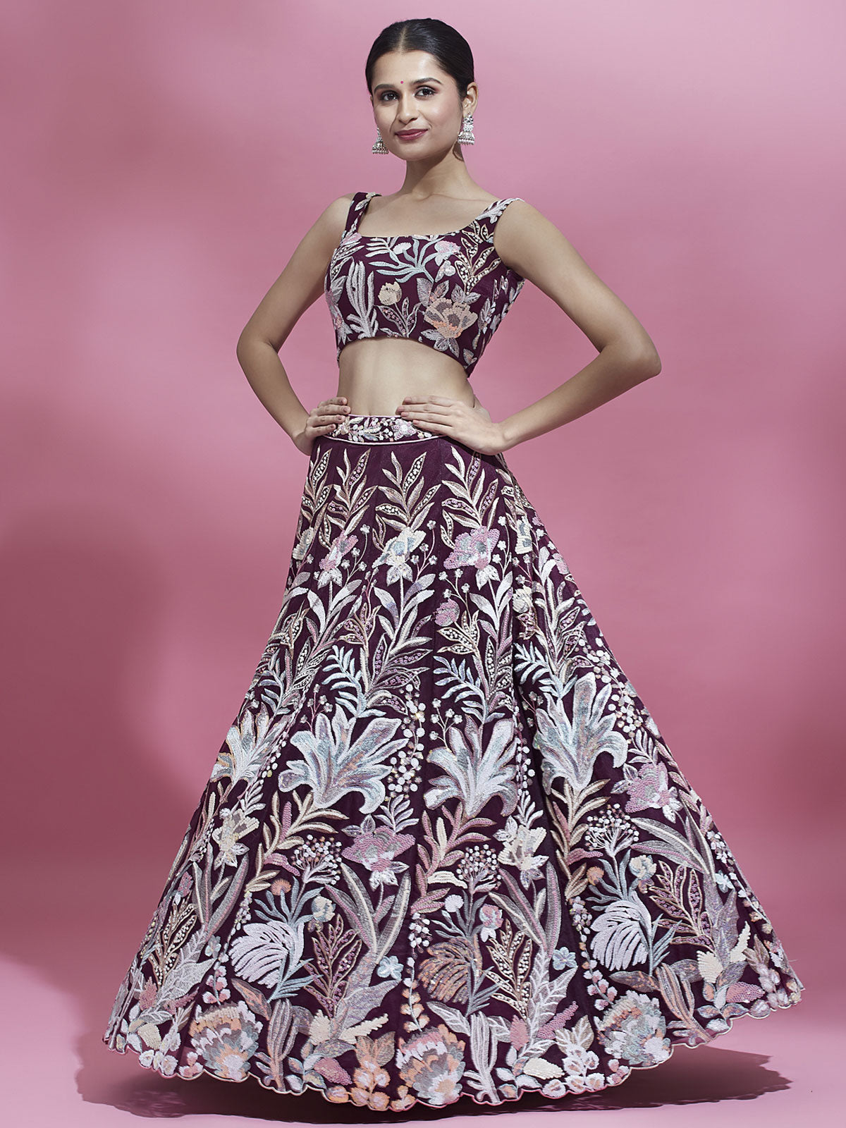 Add glamour to your ethnic wardrobe with this Burgundy Net Sequinse Work Lehenga. The semi-stitched lehenga features a flared design with multi-colored sequin and thread work embroidery, complemented by a sequin cut work border. The double shantoon inner with 2 layer can can, 17 and 10 inches, and 2 layer buckram, 10 and 4 inches, adds volume. The matching net dupatta boasts a sequin embroidery border and ethnic motifs. The unstitched blouse features heavy sequin and thread embroidery. Lehenga flair measures 3.5 meter and comes with an attached inner.