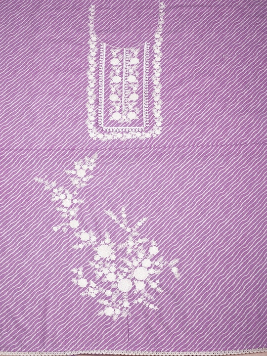 Dress to impress with our Lavender Floral Embroidered Sequinned Unstitched Dress Material. This set includes a beautifully embroidered kurta fabric with sequinned detail, a solid bottom fabric, and a matching dupatta with a taping border. Unleash your creativity and style with this stunning lavender and white dress material.???