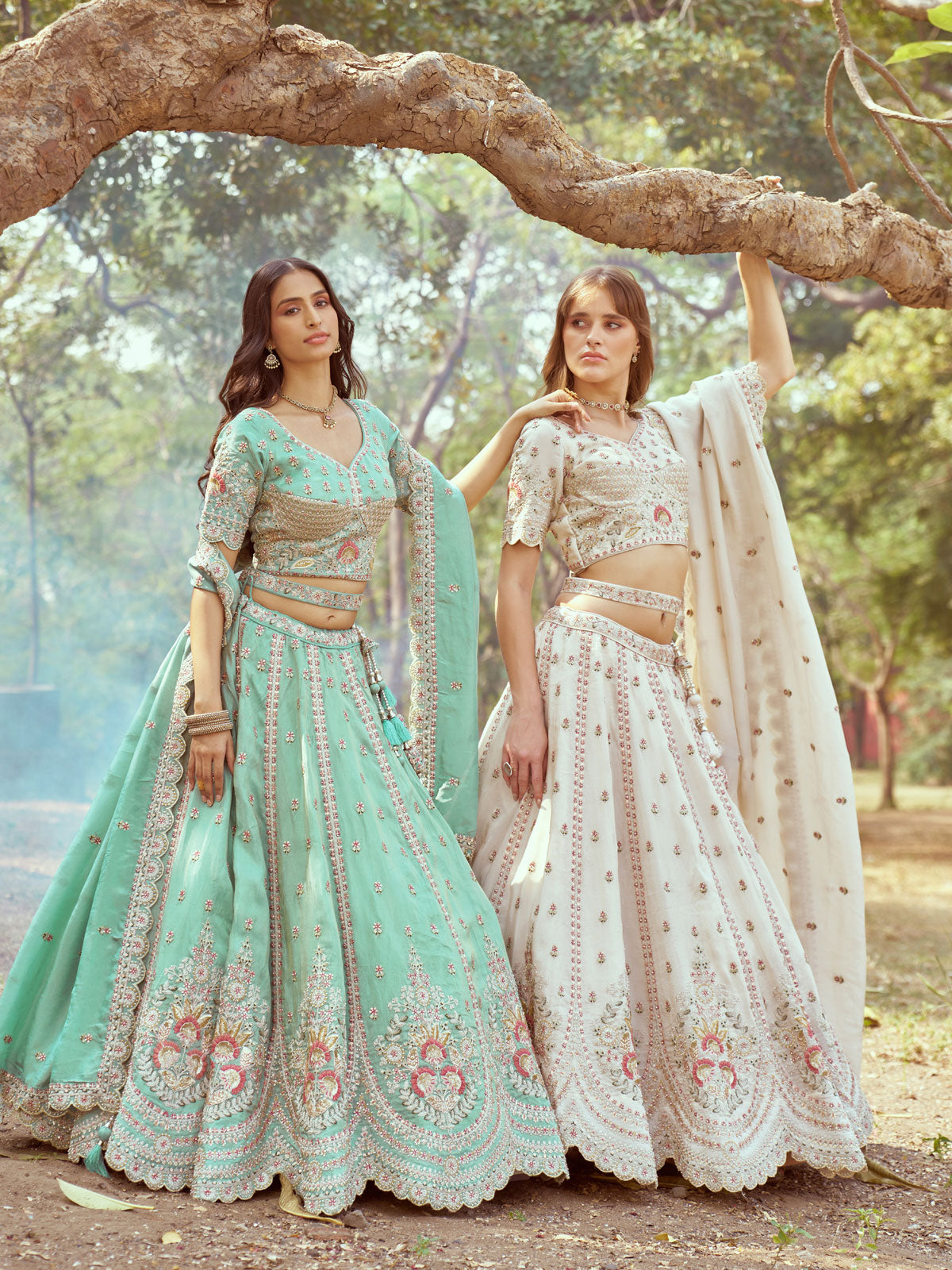 This Cream Gold crushed Tissue Fabric Lehenga choli & Dupatta features Heavy Moti and Zari work, creating an elegant look. The Semi-Stitched Lehenga has a double shantoon inner and 2 layers of Can Can for added volume. The Cold Crush Tissue fabric is also used in the Dupatta and Blouse, which includes a shantoon inner. The Lehenga has a 4 meter Flair and comes with a Waist Belt for the perfect fit.