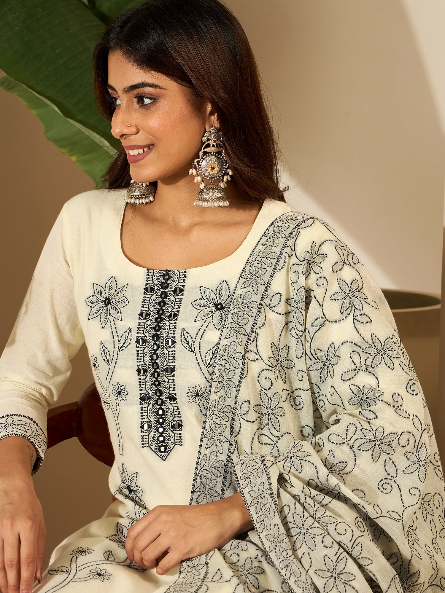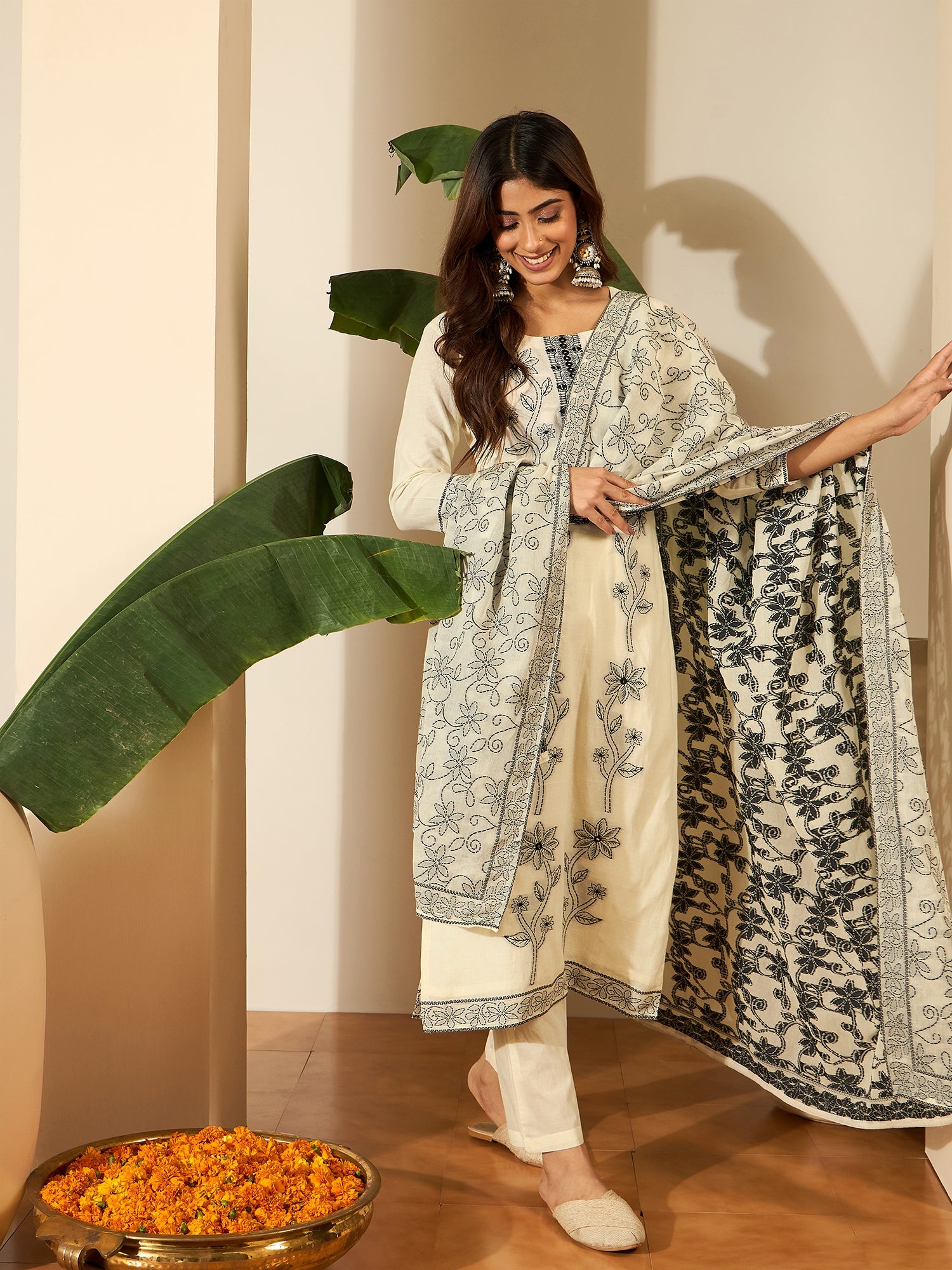 This kurta set consists of kurta, trouser & dupatta