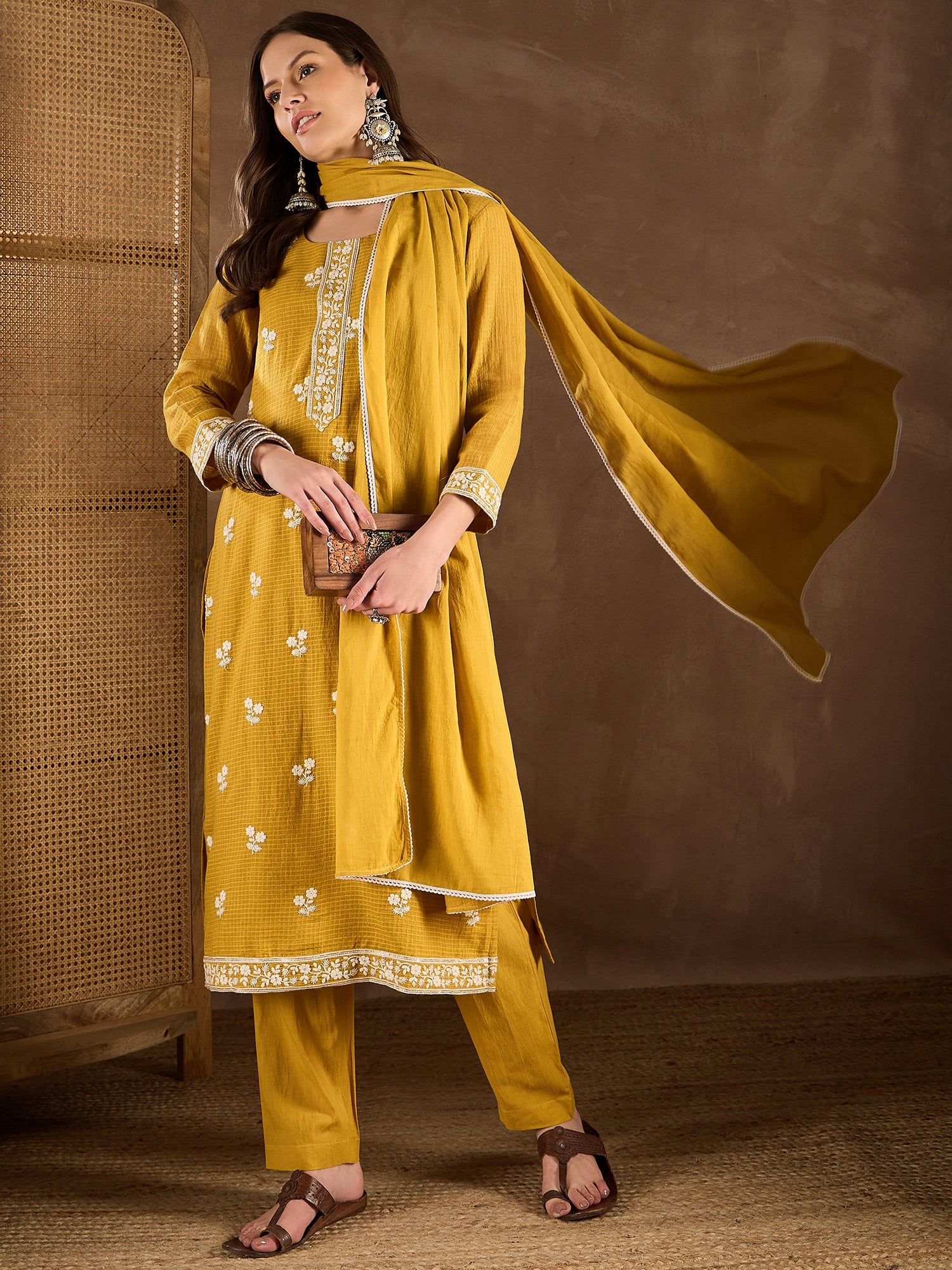 This kurta set consists of kurta, trouser & dupatta
