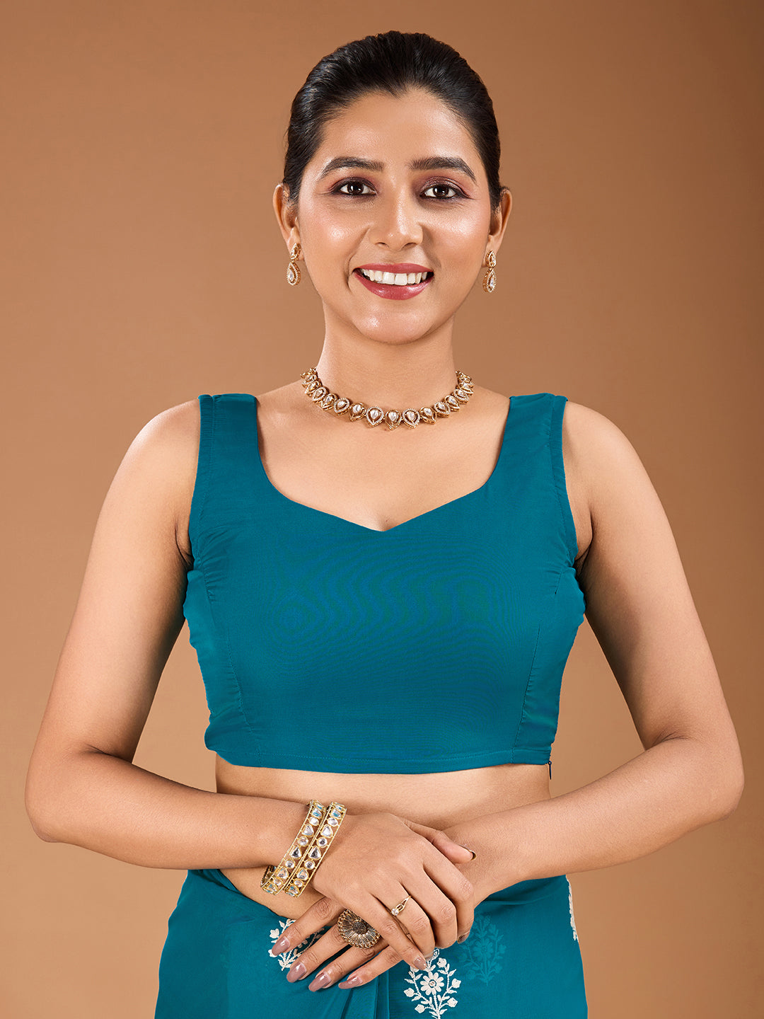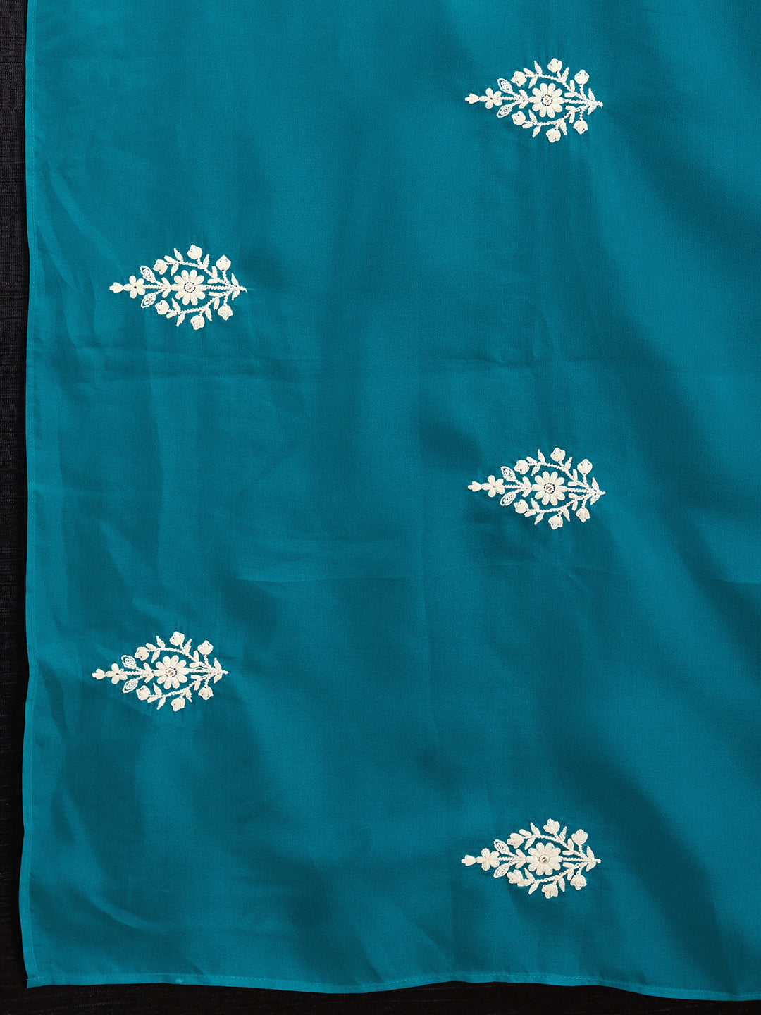 Elevate your style with our Turquoise Blue Embroidered Saree. Made with intricate embroidery, this saree adds a touch of elegance to any occasion. Comes with an unstitched blouse piece for a perfect fit. Actual blouse piece may differ from model's.