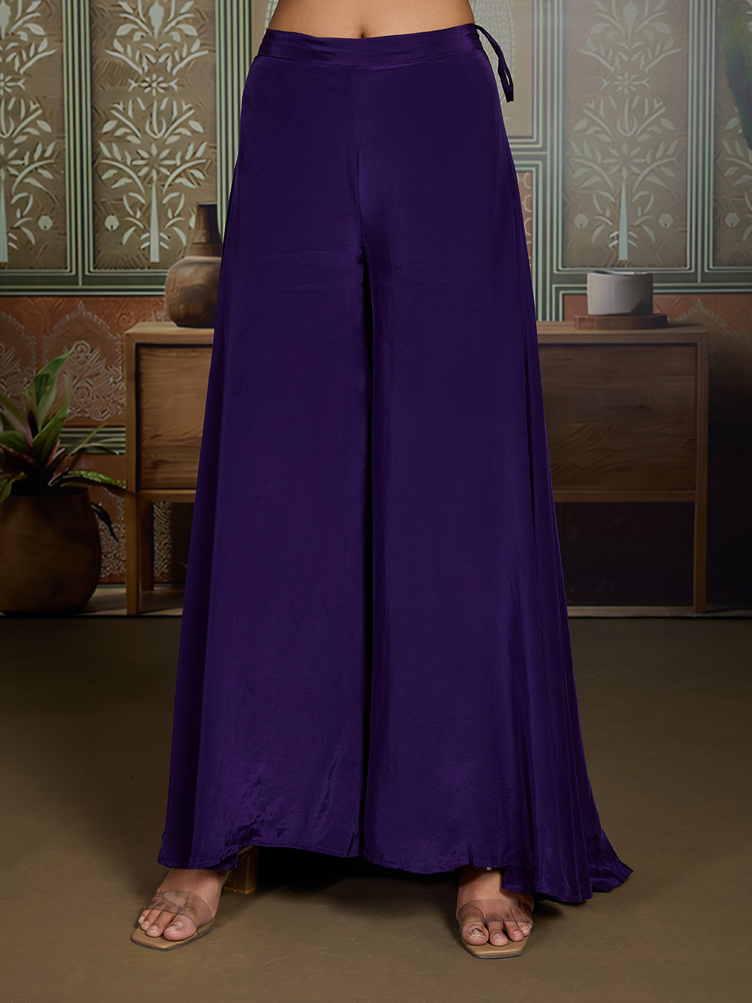 Purple solid trouser , has an elasticated waistband with slip-on closure