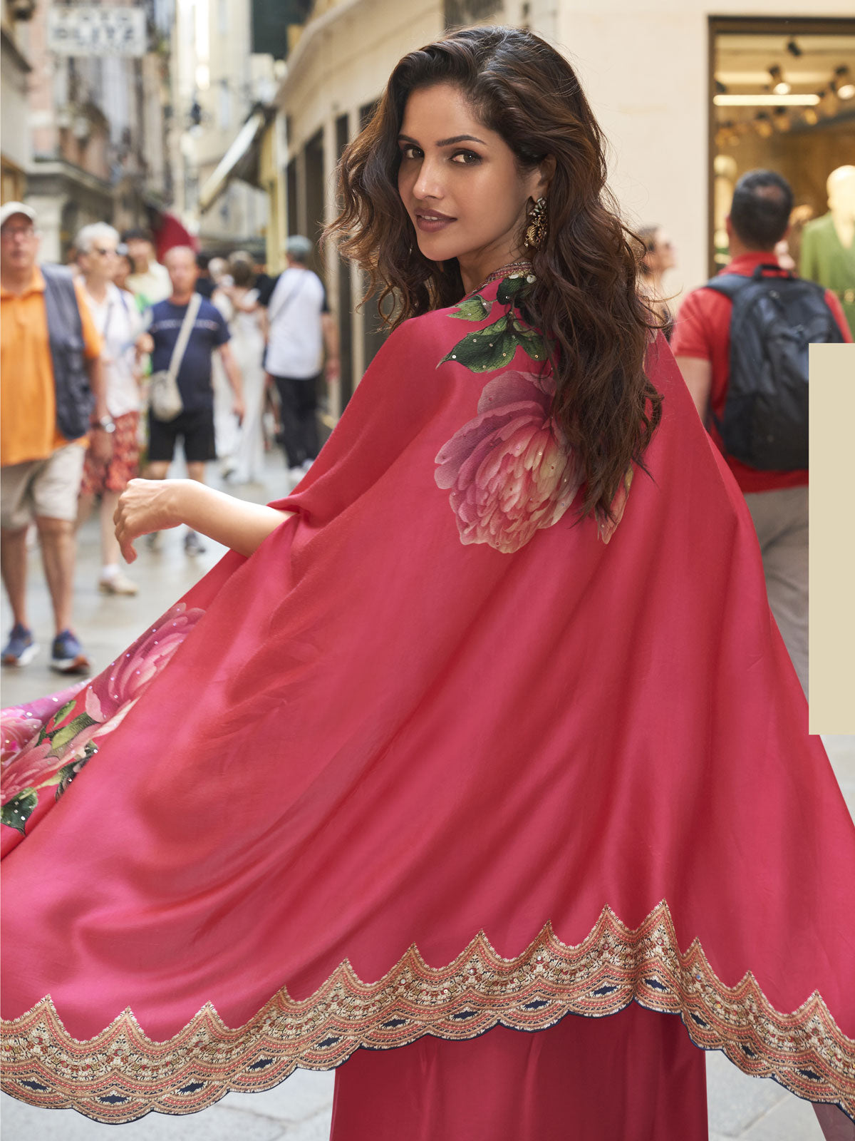 Elevate your wardrobe with this sophisticated pink crepe silk salwar suit, expertly crafted for refined elegance. The lightweight crepe fabric drapes beautifully while maintaining its shape, making it ideal for both casual gatherings and semi-formal occasions. Intricate embroidered detailing adds a layer of visual interest and craftsmanship to this ready-to-wear ensemble. The coordinated dupatta completes the look, offering versatility in styling. Perfect for those seeking quality ethnic wear that combines comfort with timeless appeal.