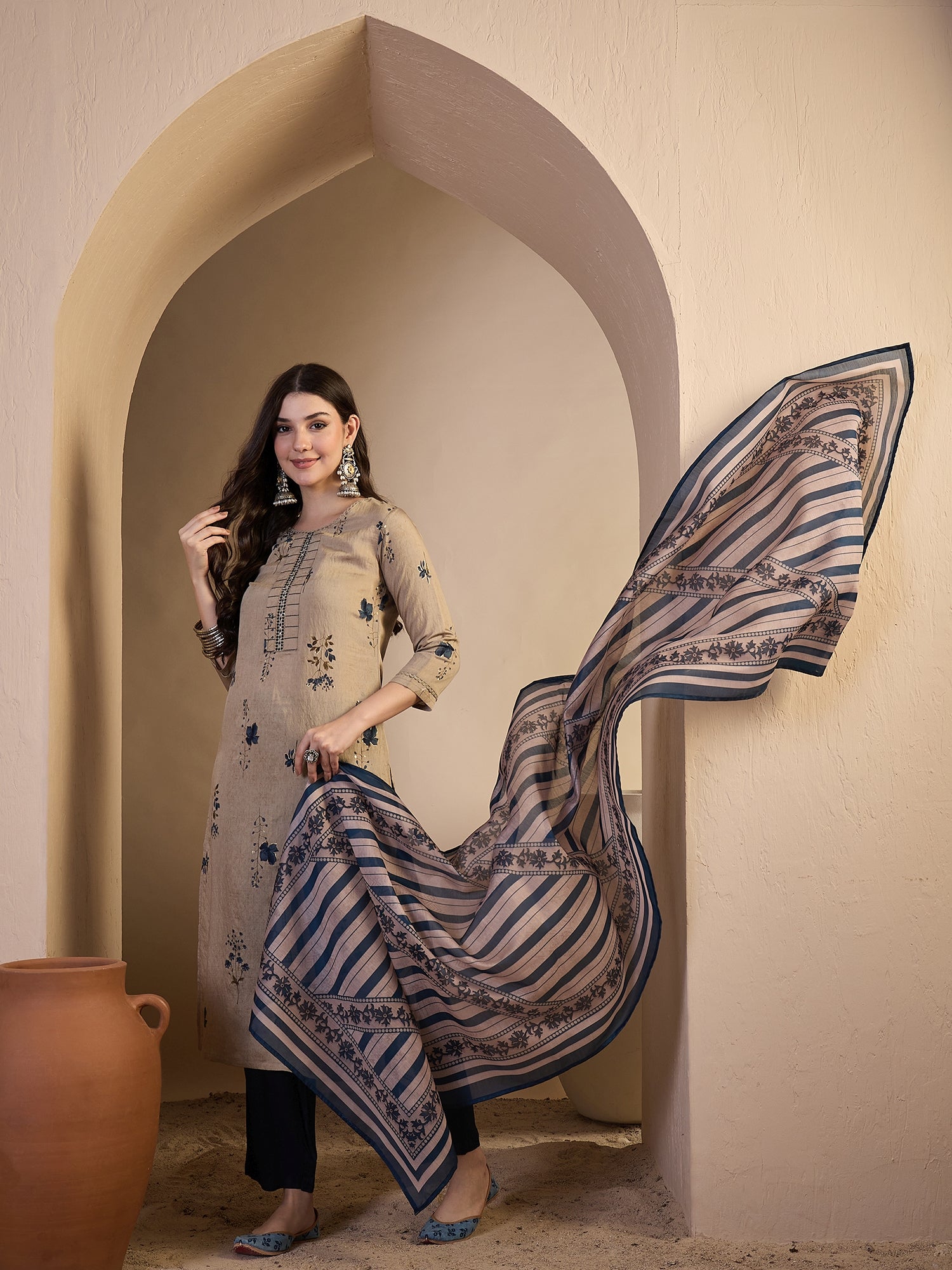 TOP: Chanderi Cotton, BOTTOM: Cotton, DUPATTA: Mul Cotton, Dry Clean