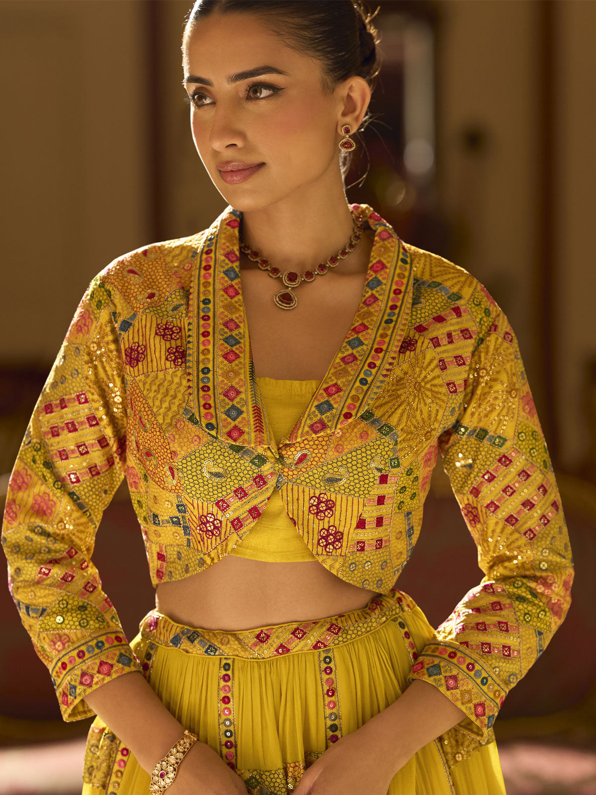Elevate your ethnic wardrobe with this stunning yellow georgette lehenga choli, expertly crafted to deliver timeless elegance. The intricate embroidered detailing adds sophistication and visual depth, making it an ideal choice for weddings, festivals, and celebrations. The lightweight georgette fabric ensures comfort throughout the day while maintaining its graceful drape. This complete ensemble includes a coordinated choli and dupatta, offering a polished, ready-to-wear solution for the discerning wearer seeking quality and style.