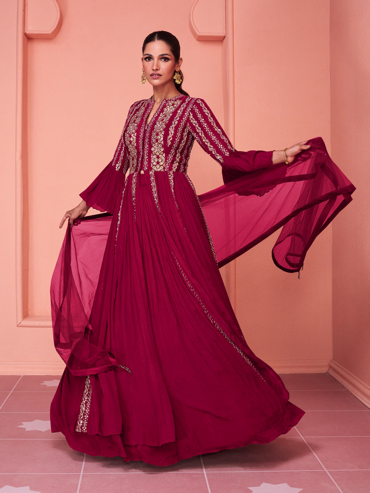 Ready to Ship products are dispatched within 3 days. Our usual shipping time is around 7 days for items bought unstitched / semi stitched, items bought with Tailoring Options are about 10 - 12 days shipping time.