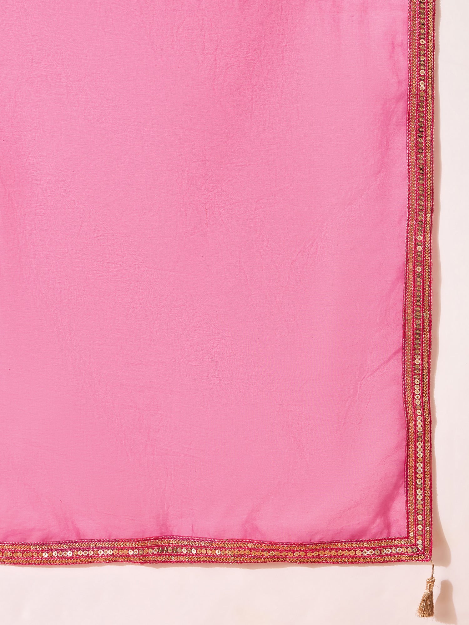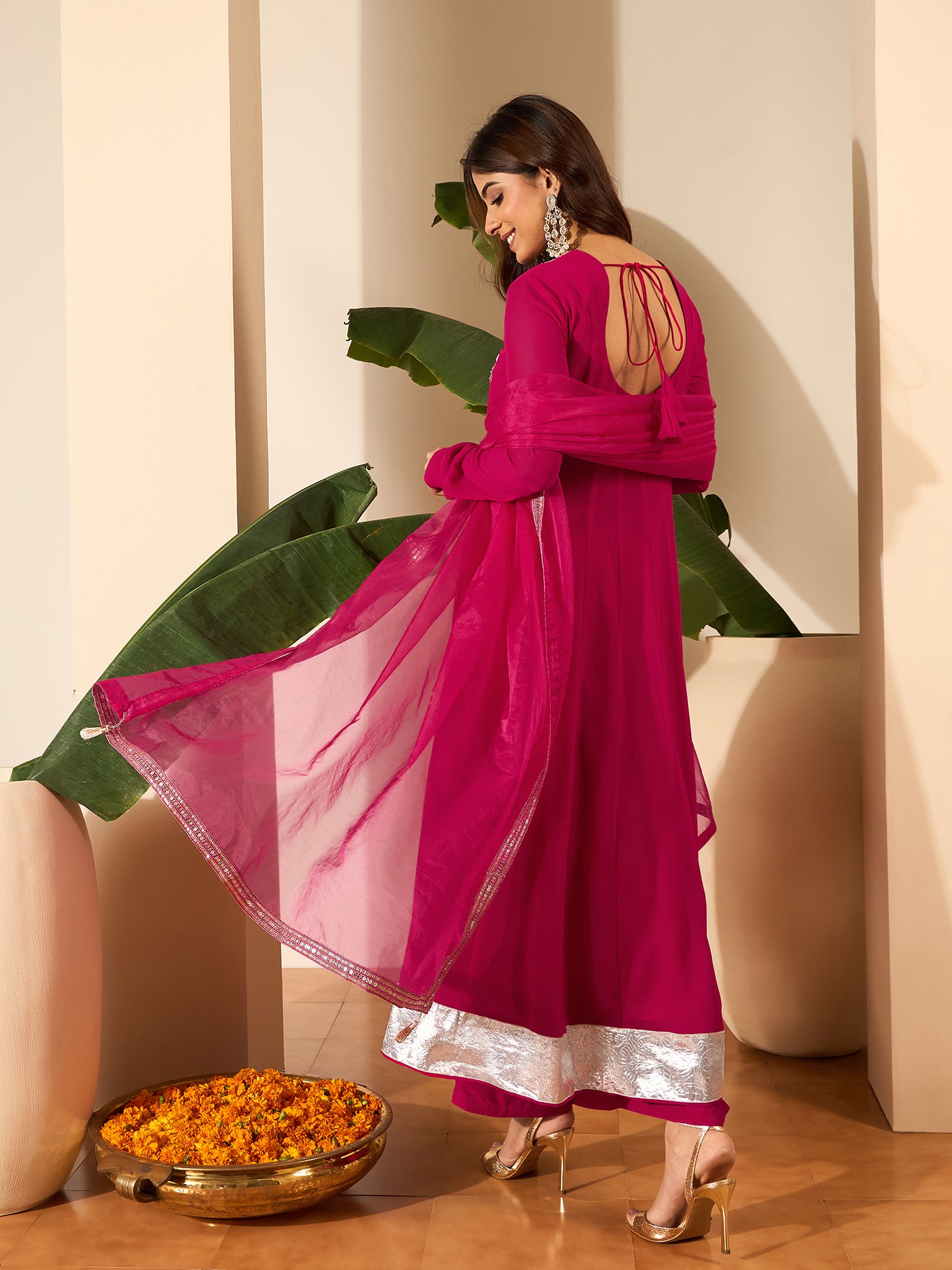 Magenta & silver embroidered kurta with palazzos with dupatta