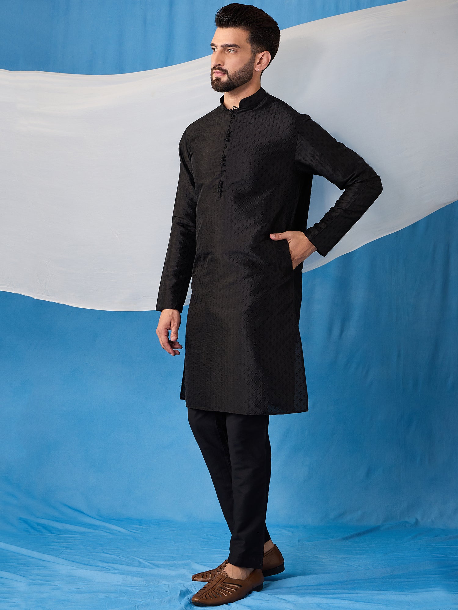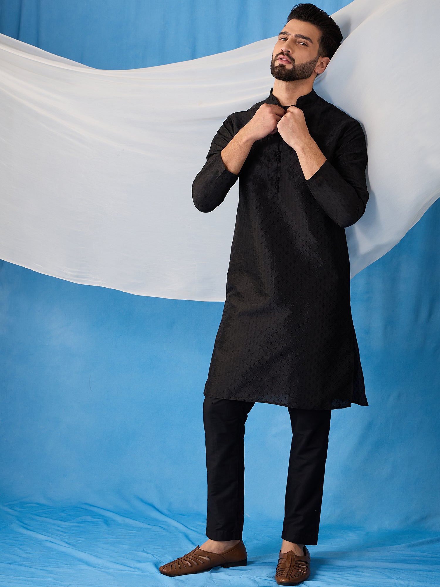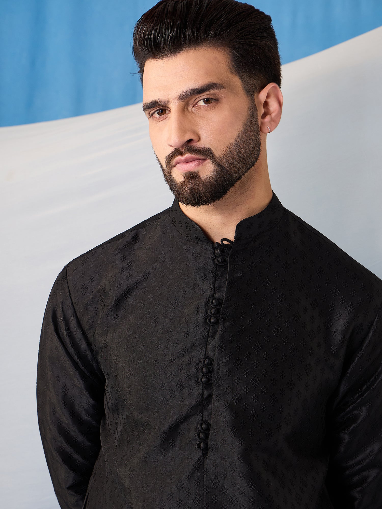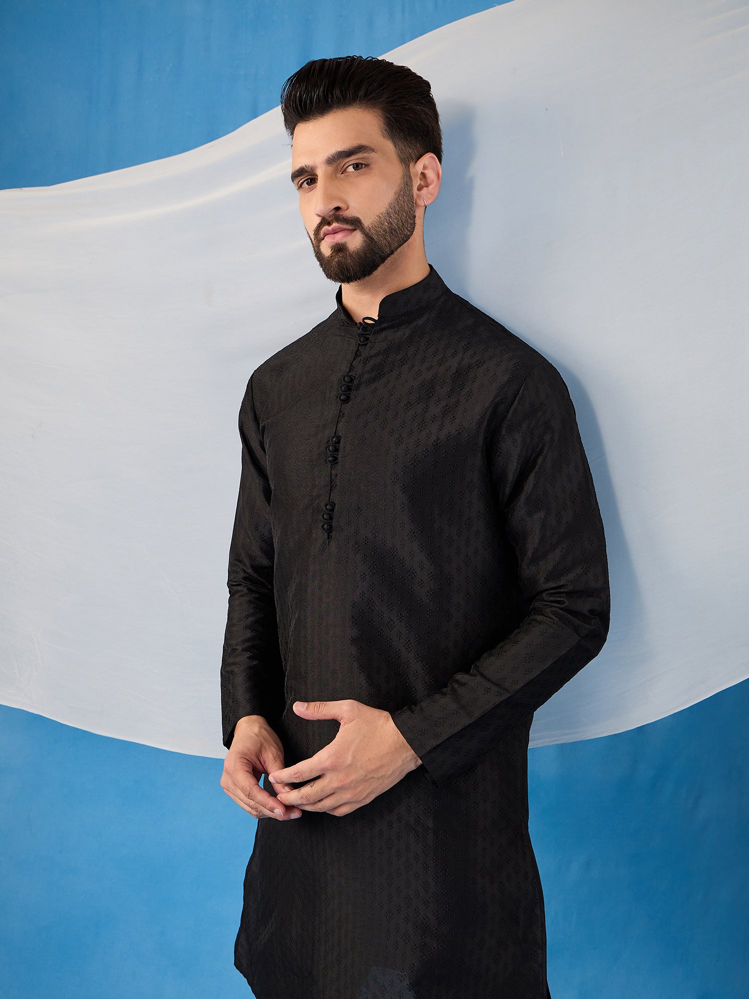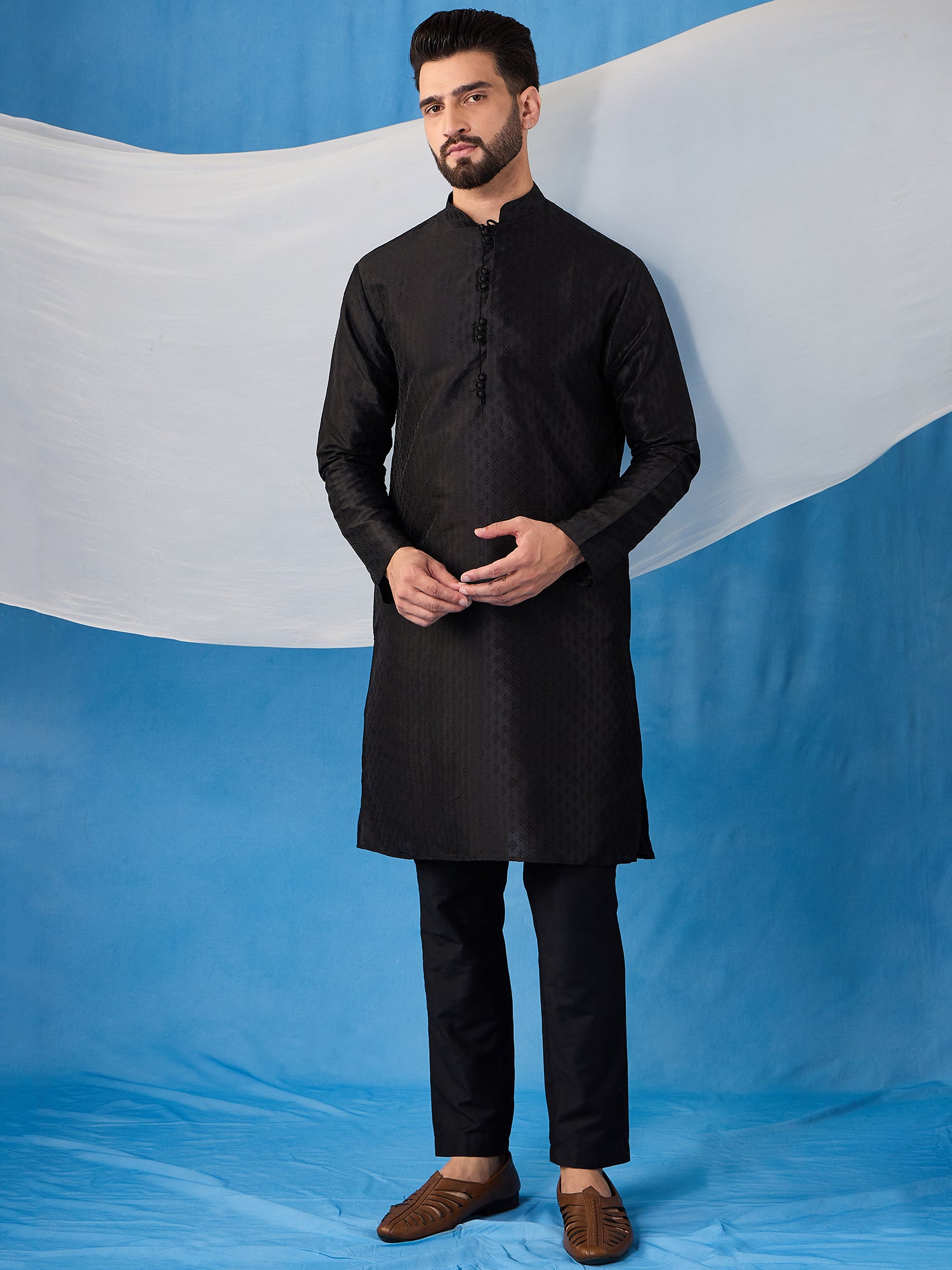 Invest in elegance with our Floral Embroidered Kurta and trousers set. Made from a luxurious silk blend machine weave fabric, this outfit features floral embroidery, mandarin collar, and 2 pockets with thread work detail. The straight shape, regular style, and knee-length straight hem make it a timeless classic. Additionally, the trousers have a partially elasticated waistband for a comfortable fit and a hook and eye & zip closure. Perfect for any occasion, this set will add sophistication to your wardrobe.