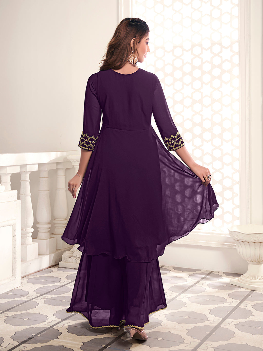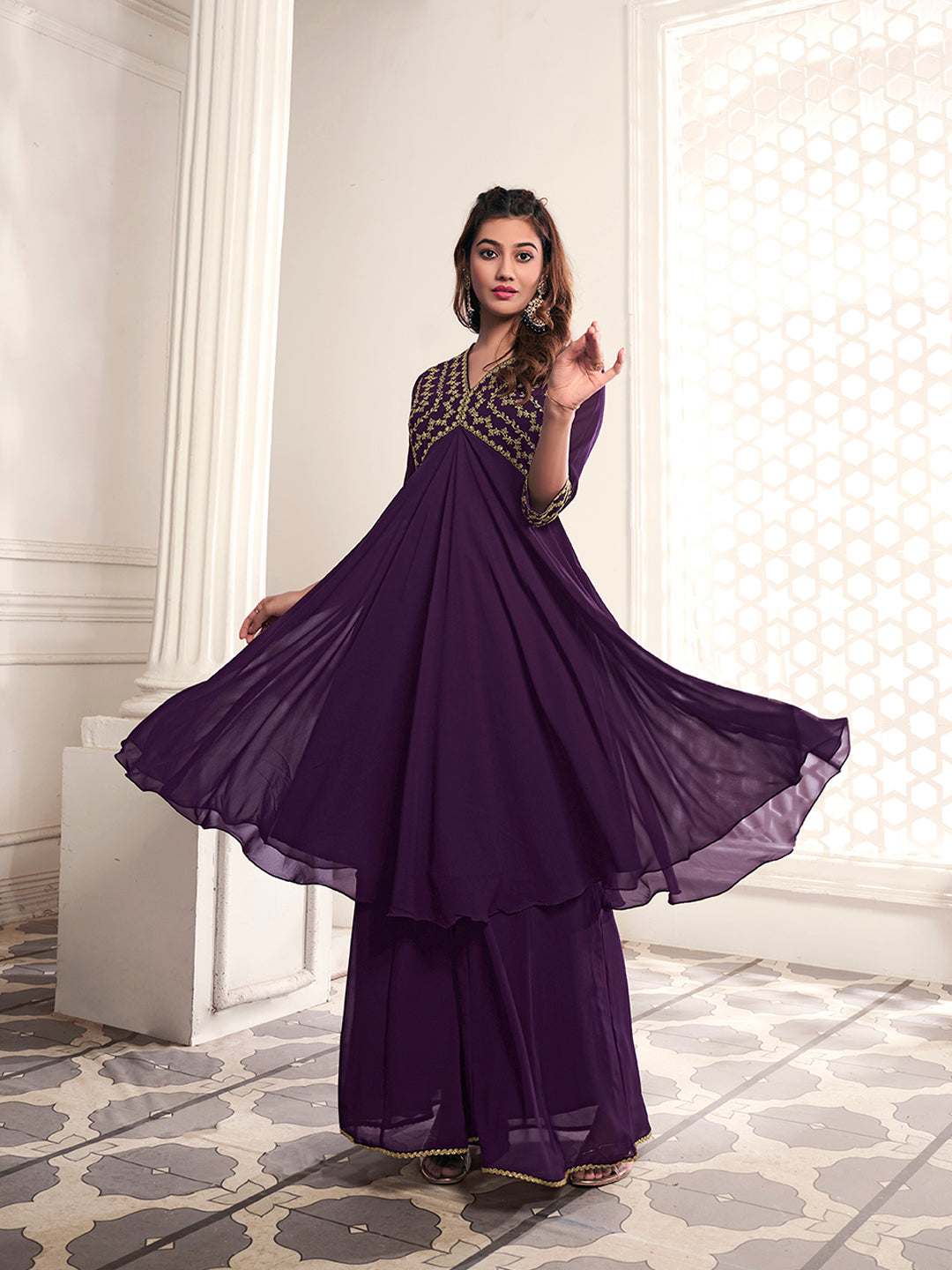 Purple solid palazzo, has an elasticated waistband with slip-on closure