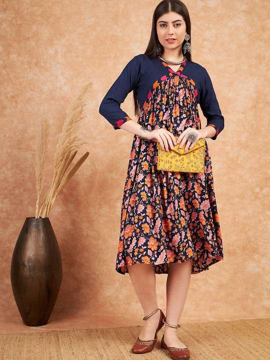 Navy blue, pink & orange ethnic Dress