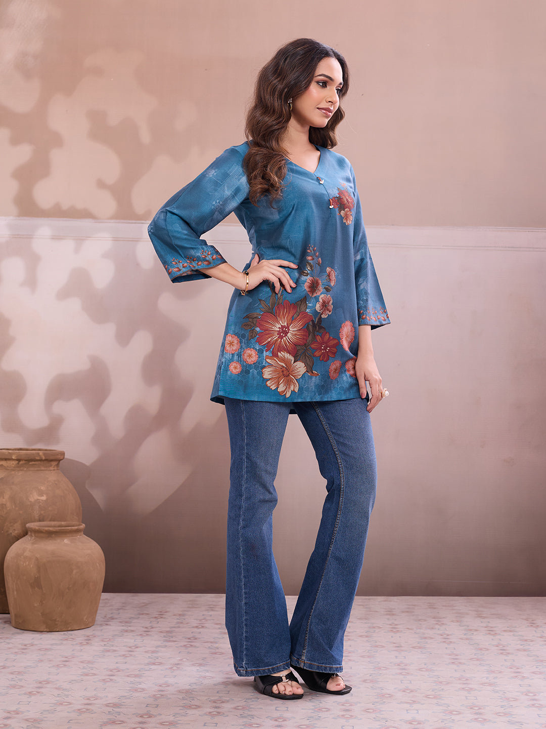 V-neck, three-quarter, Flared Sleeves