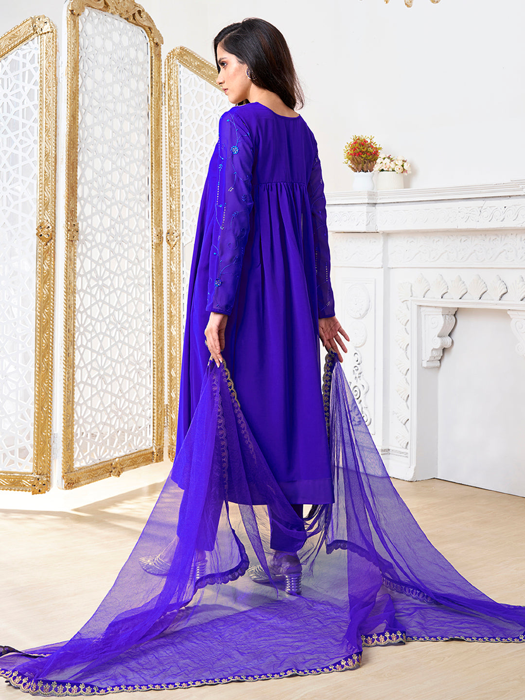 Ready to Ship products are dispatched within 3 days. Our usual shipping time is around 7 days for items bought unstitched / semi stitched, items bought with Tailoring Options are about 10 - 12 days shipping time.