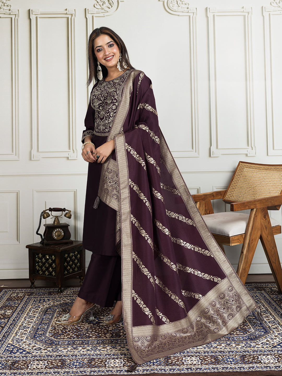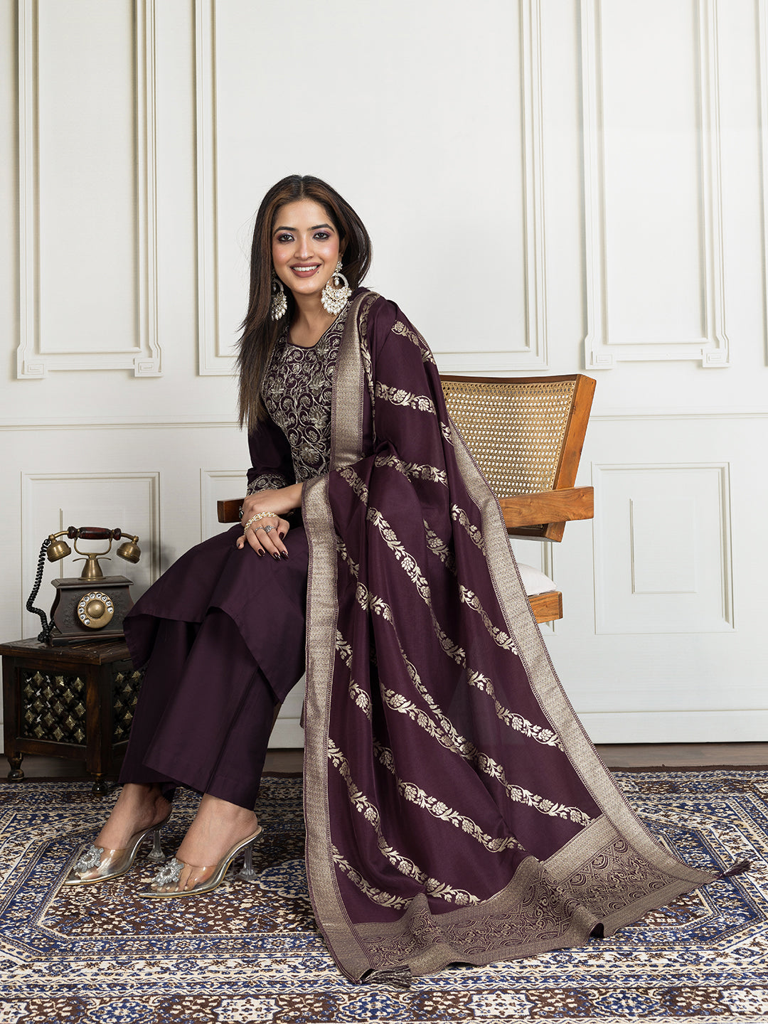 Purpal, gold-toned kurta, trousers and dupatta