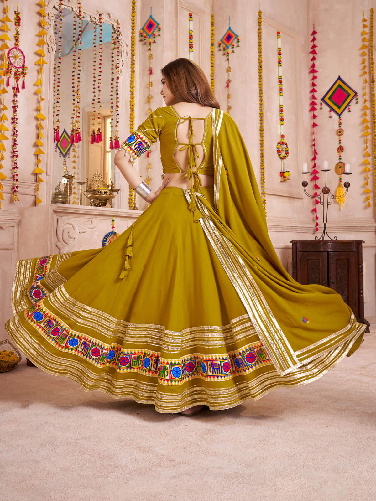 Celebrate Navratri in style with this Fluorescent Green Chaniya Choli, designed for women who embrace vibrant festive fashion. Made from soft, breathable viscose cotton, it ensures comfort during long hours of dancing. The lehenga features an impressive 8.5-meter flair, creating graceful twirls that highlight elegance and tradition. Perfectly crafted with attention to detail, this outfit blends cultural heritage with ease, making it an excellent choice for Garba nights.