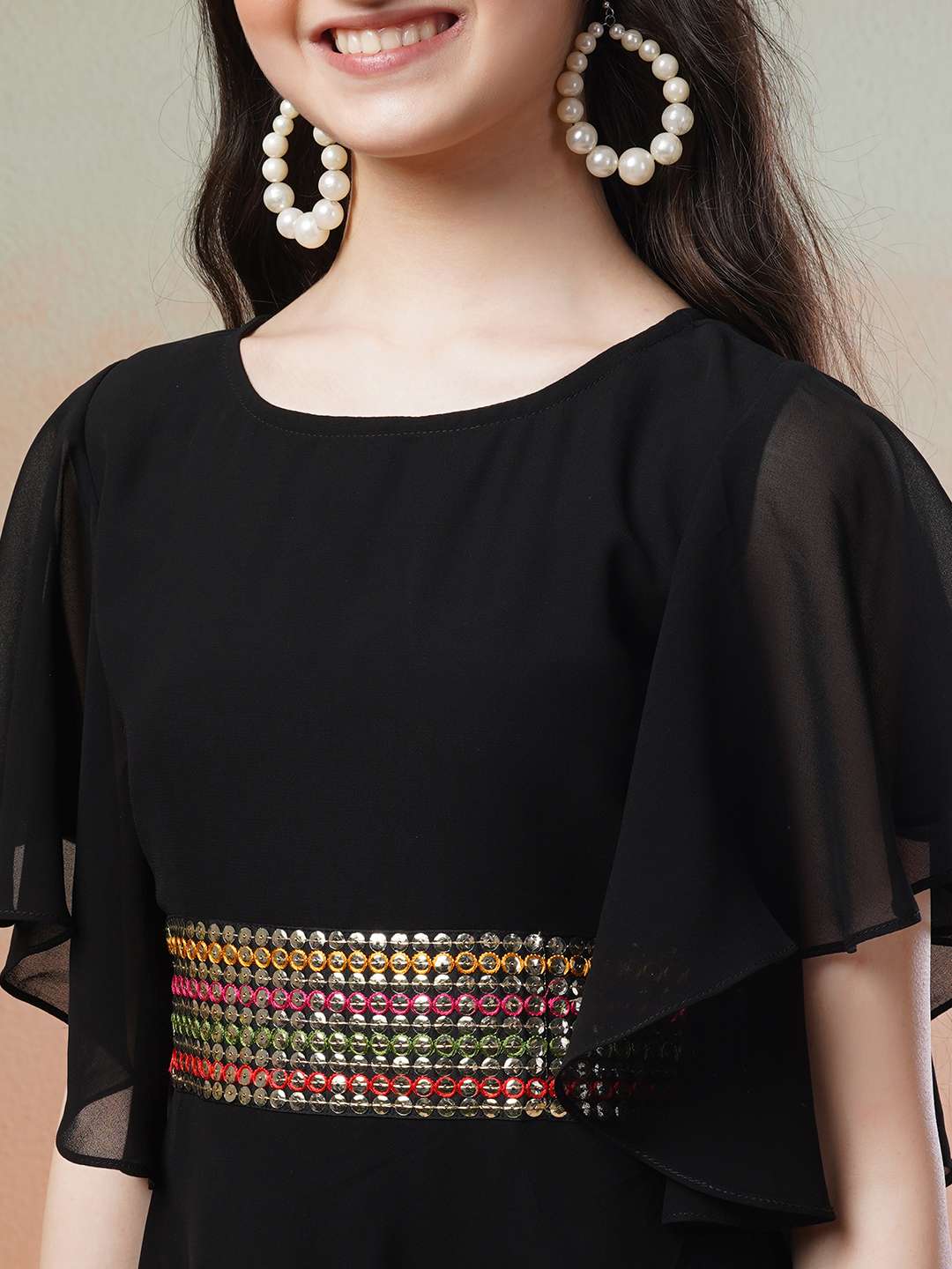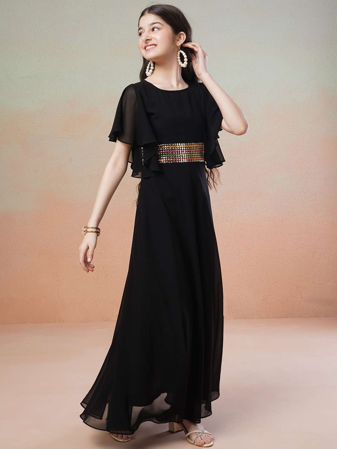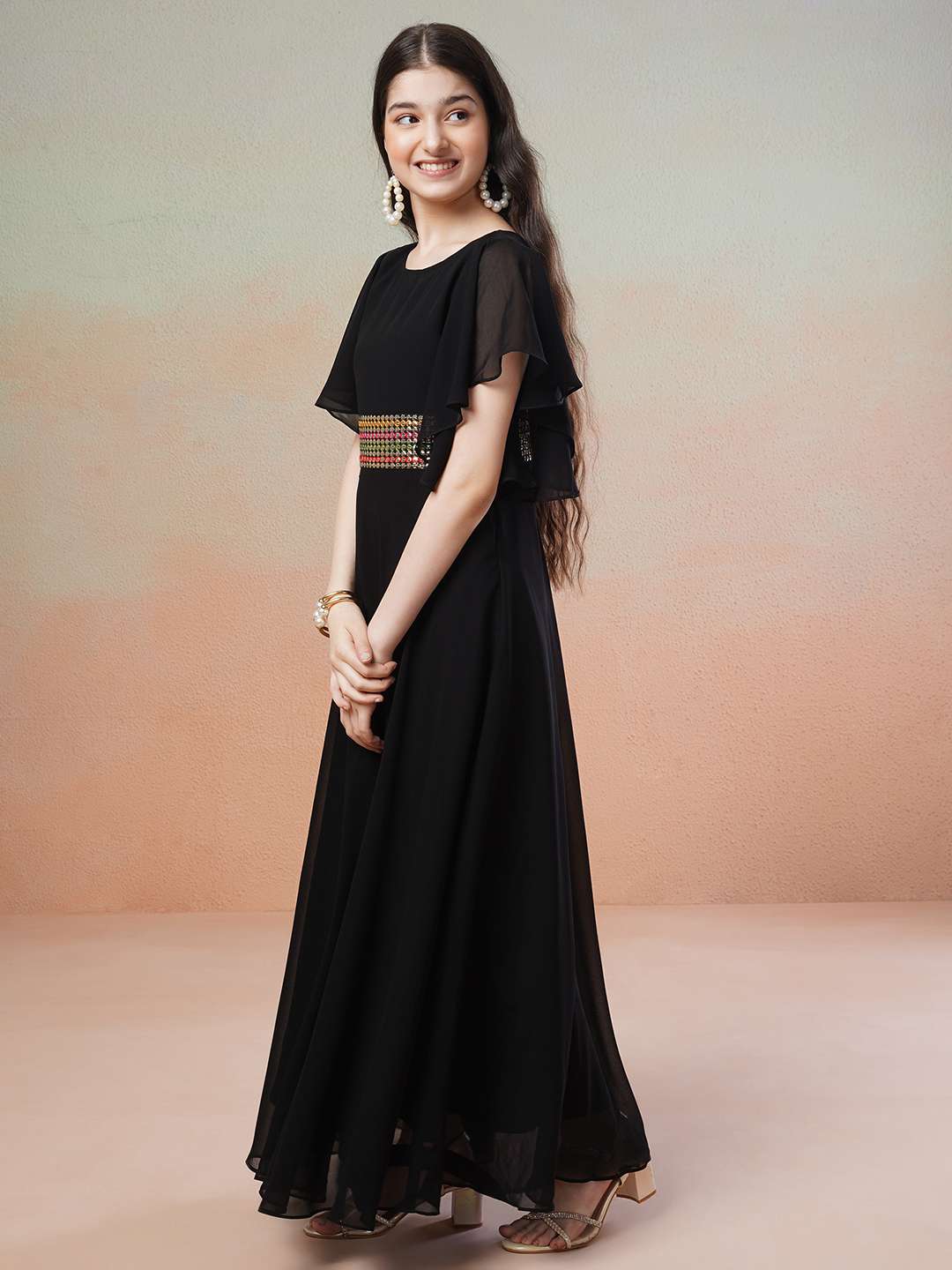 Girls Embellished Details Fit & Flared Maxi Dresses