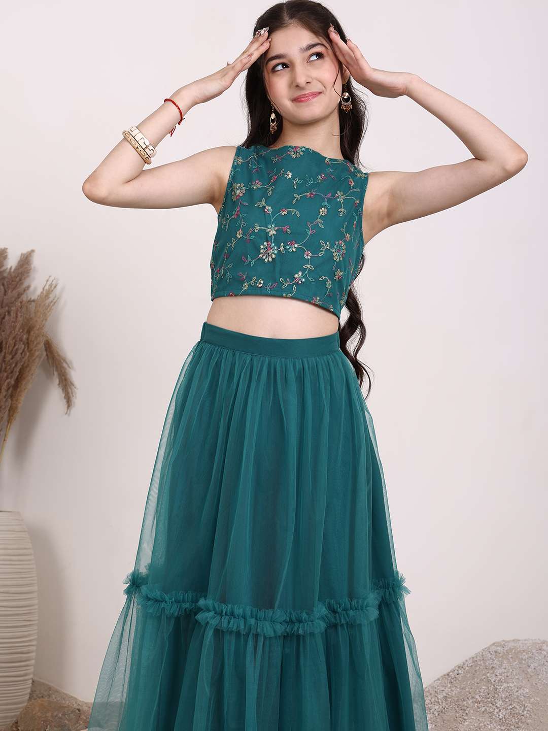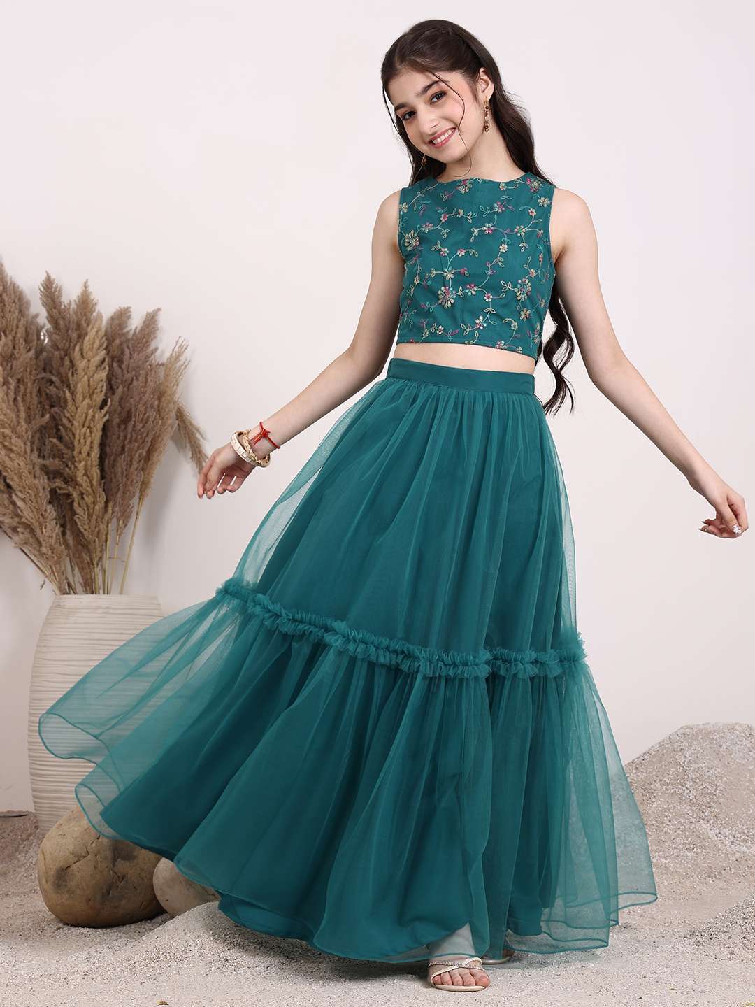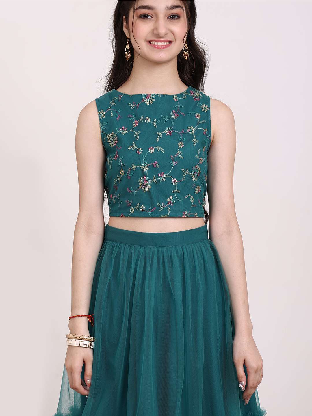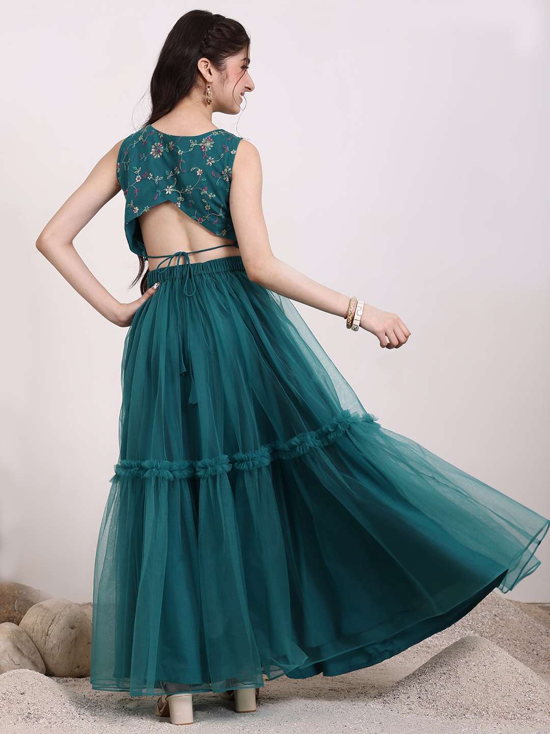 Teal embroidered lehenga choli, thread work