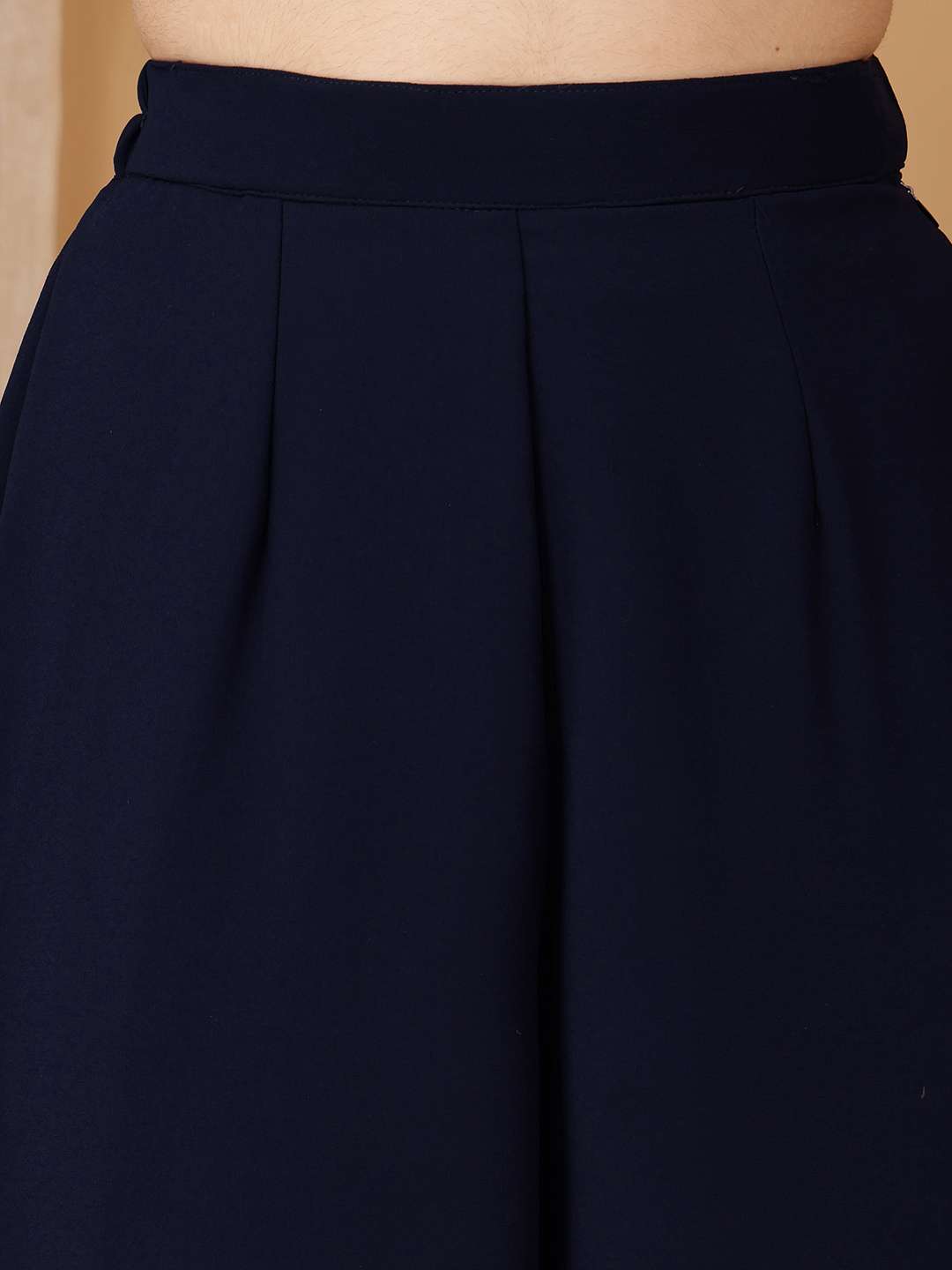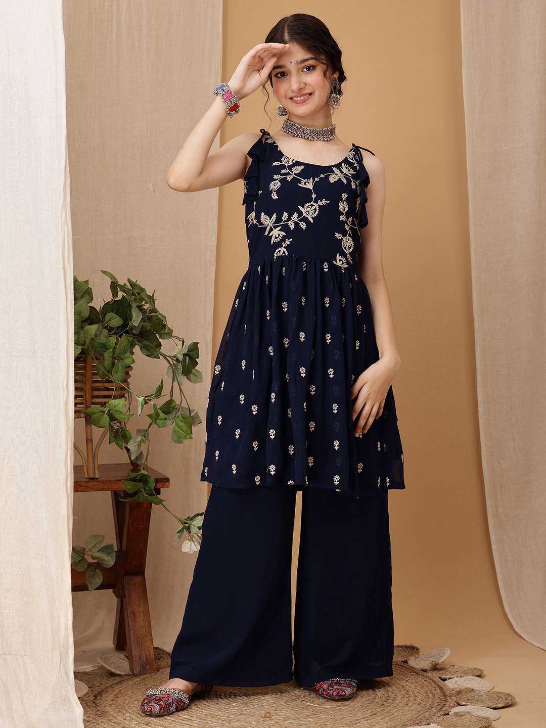 Navy Blue & Gold Embroidered Kurta with Palazzos