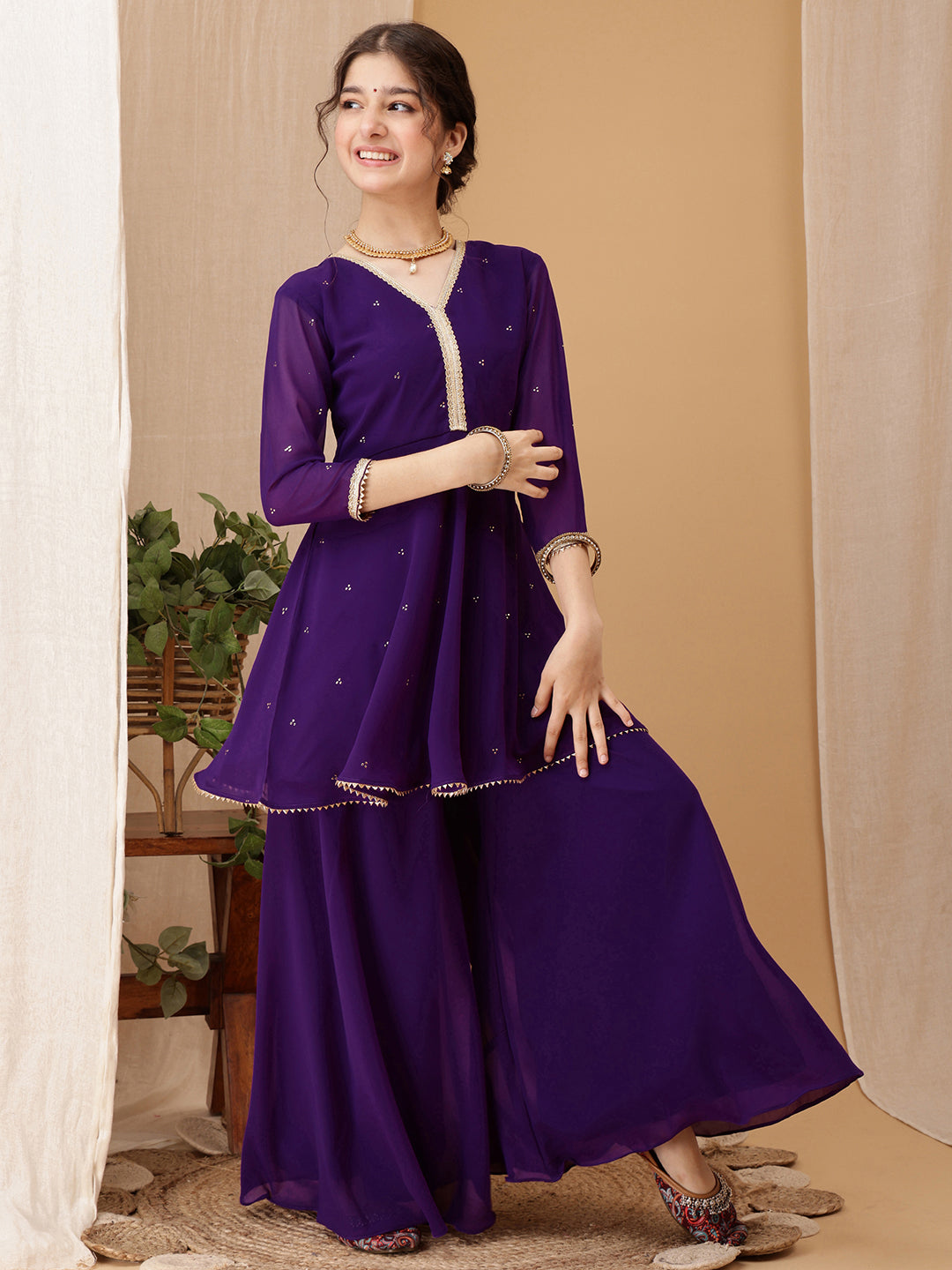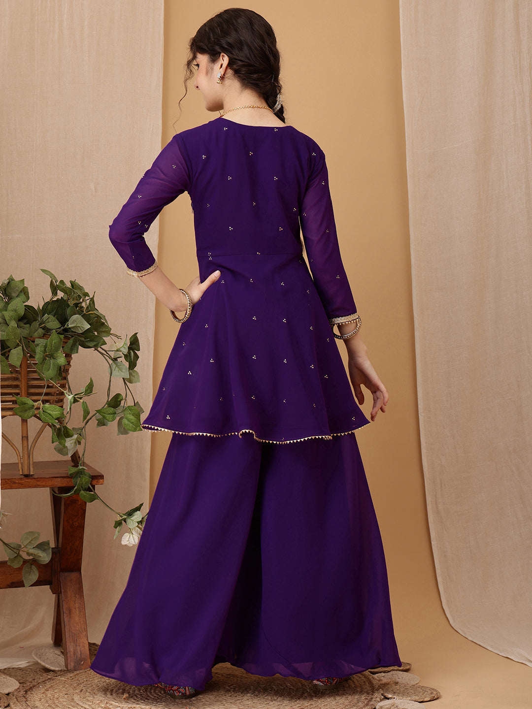 Purple embroidered Kurti with Palazzos