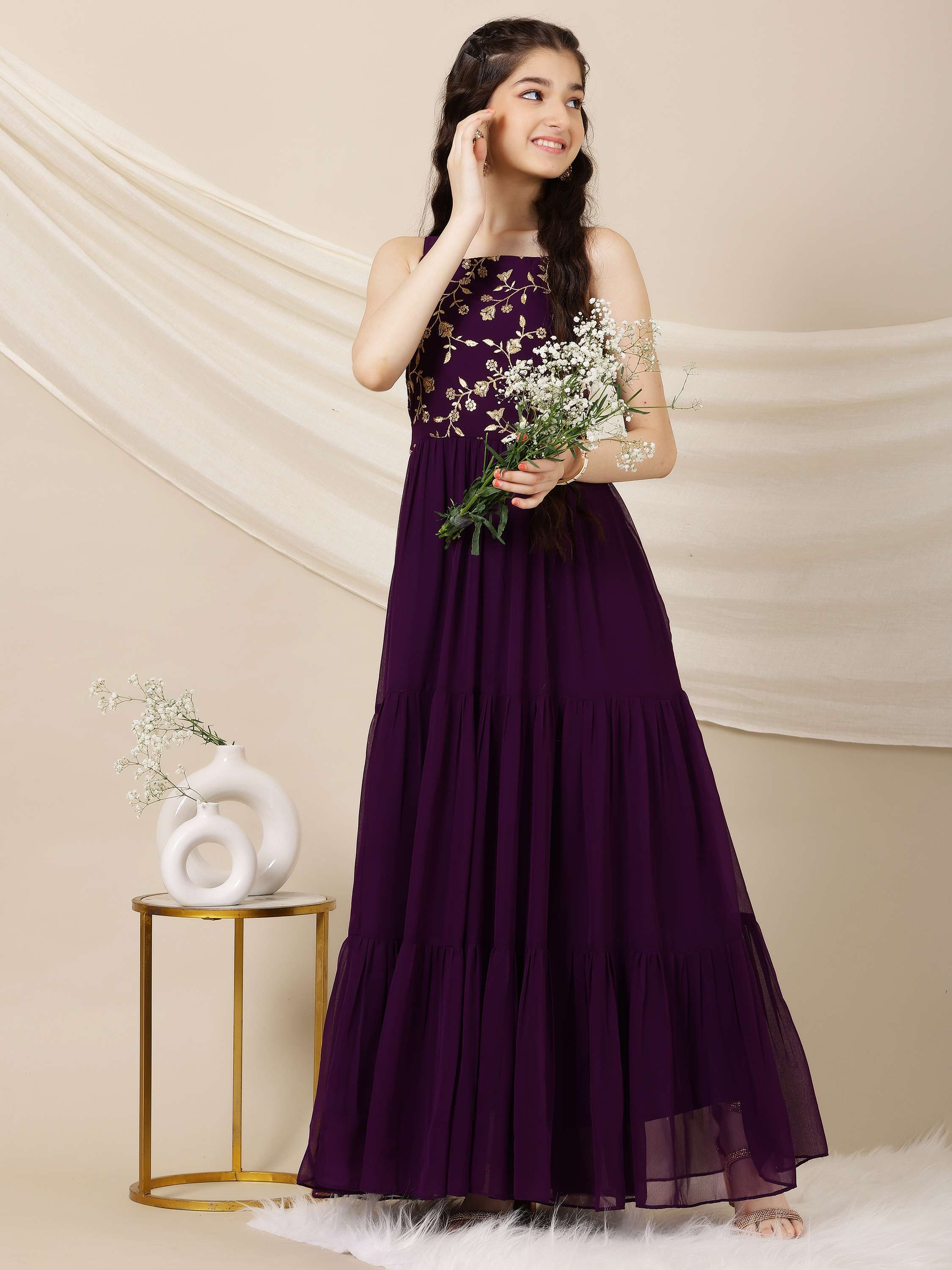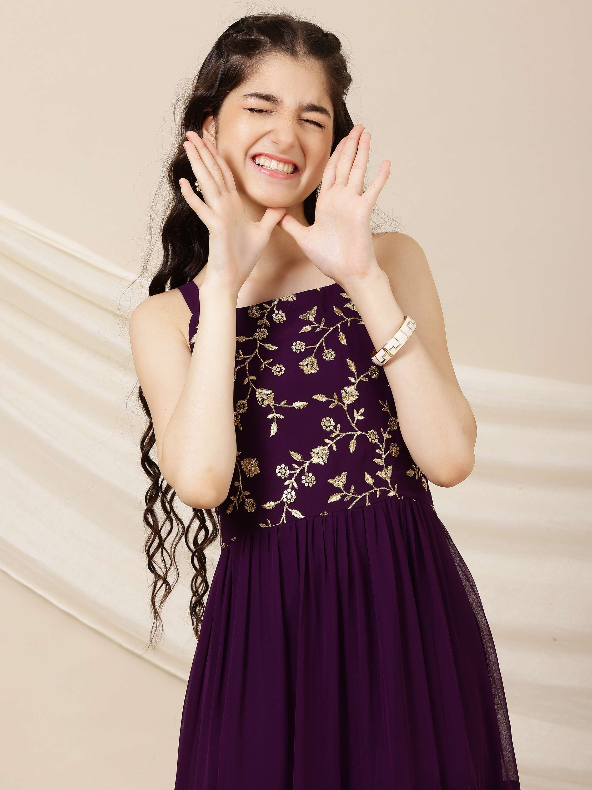 Girls Floral Embroidered A-Line Maxi Ethnic Dresses