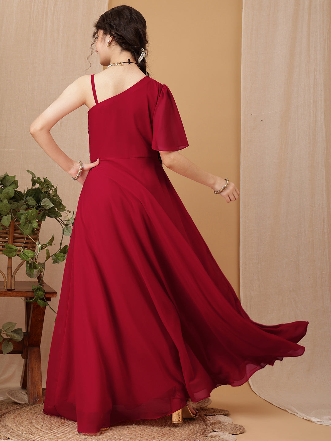 Red and silver toned ethnic Dress