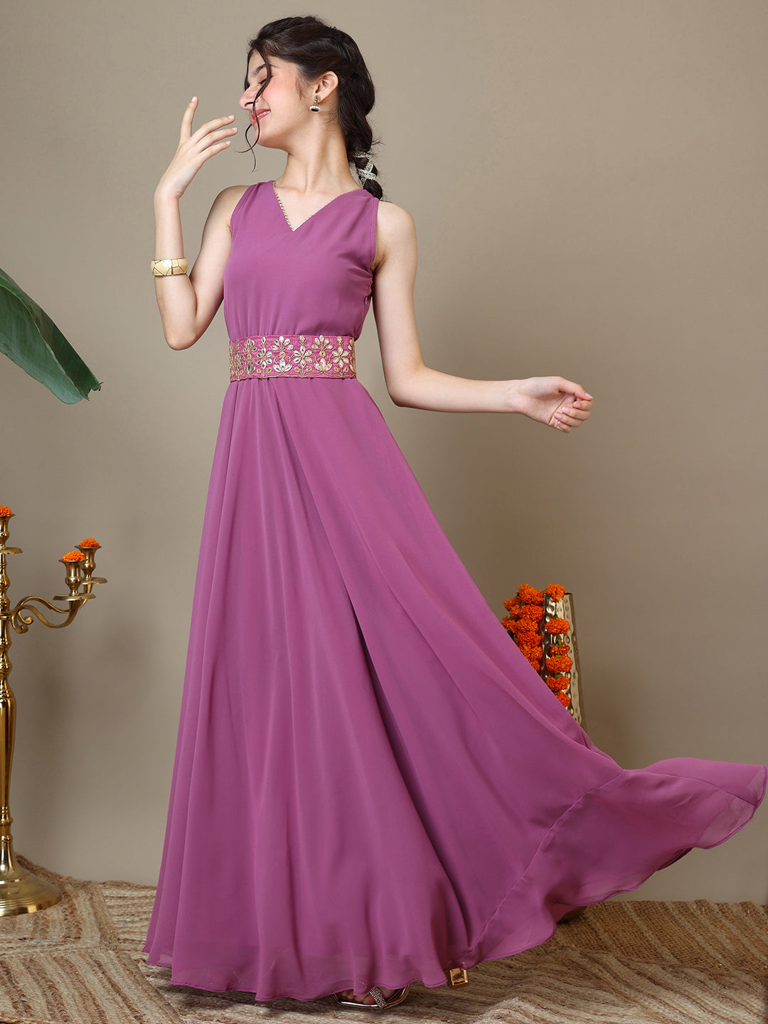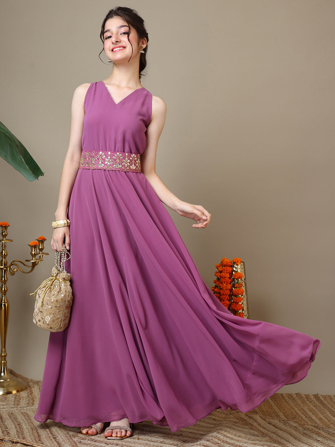 Top: Georgette, Top inner: Crepe & Embellished Belt