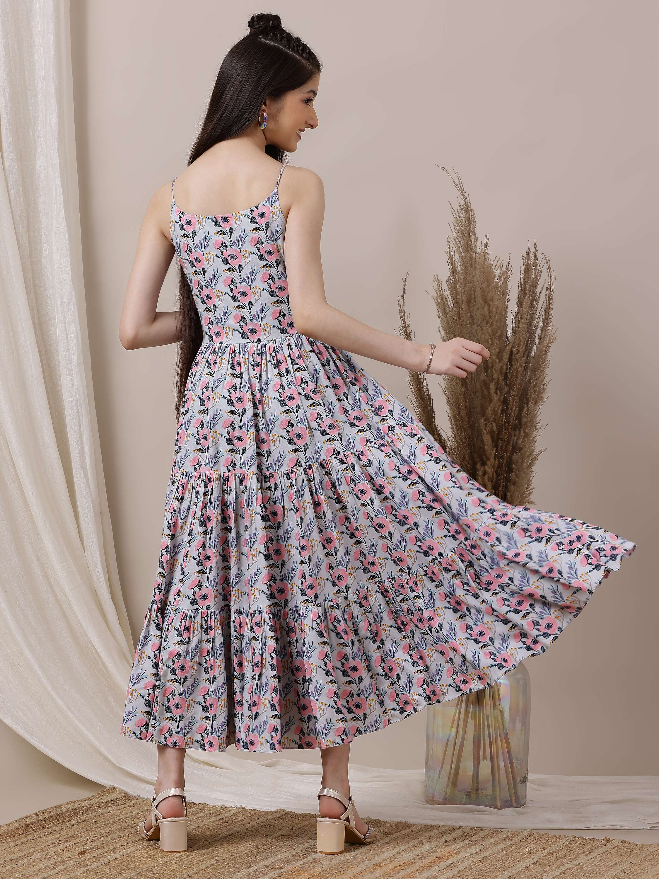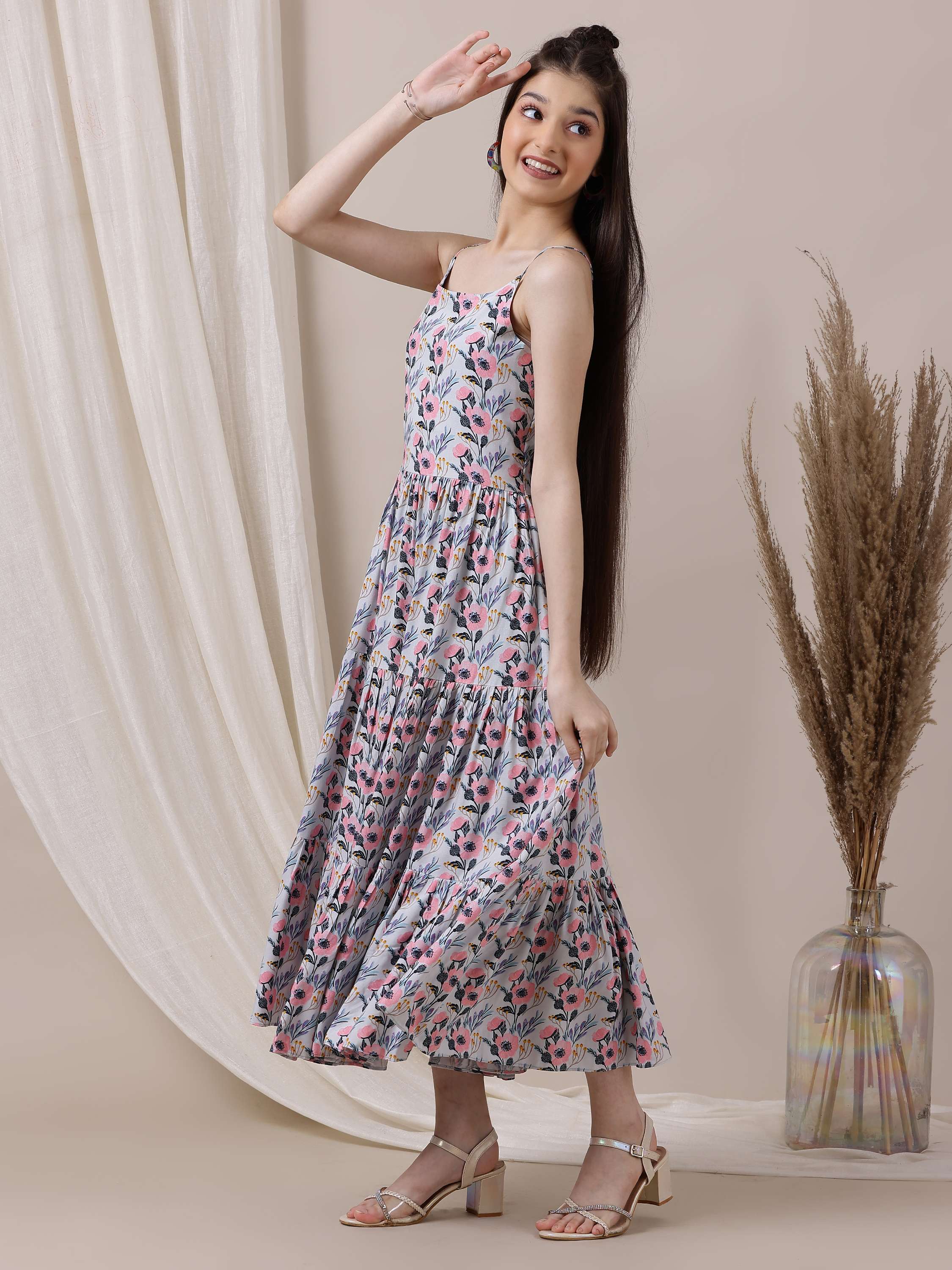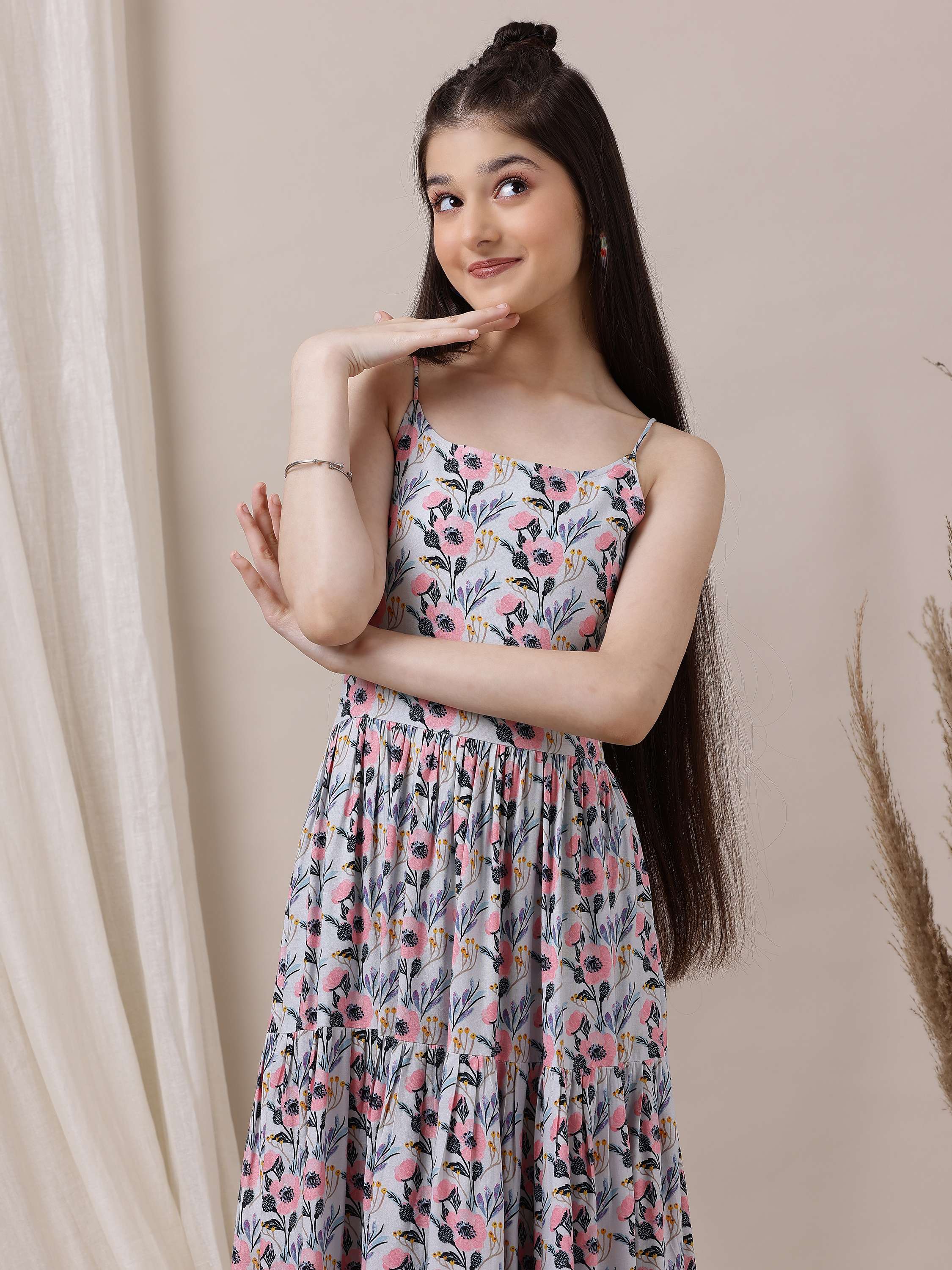 Crafted from high-quality rayon and crepe materials, this Girls Printed Fit & Flared Midi Dress offers both comfort and style. Featuring a beautiful blue and pink ethnic print, a flattering fit and flared shape, and a slip-on closure, this dress is perfect for any occasion. Stay cool with its no-sleeve design and flared hem, and keep it classy with its round-neck and lining. Dry clean for easy maintenance.