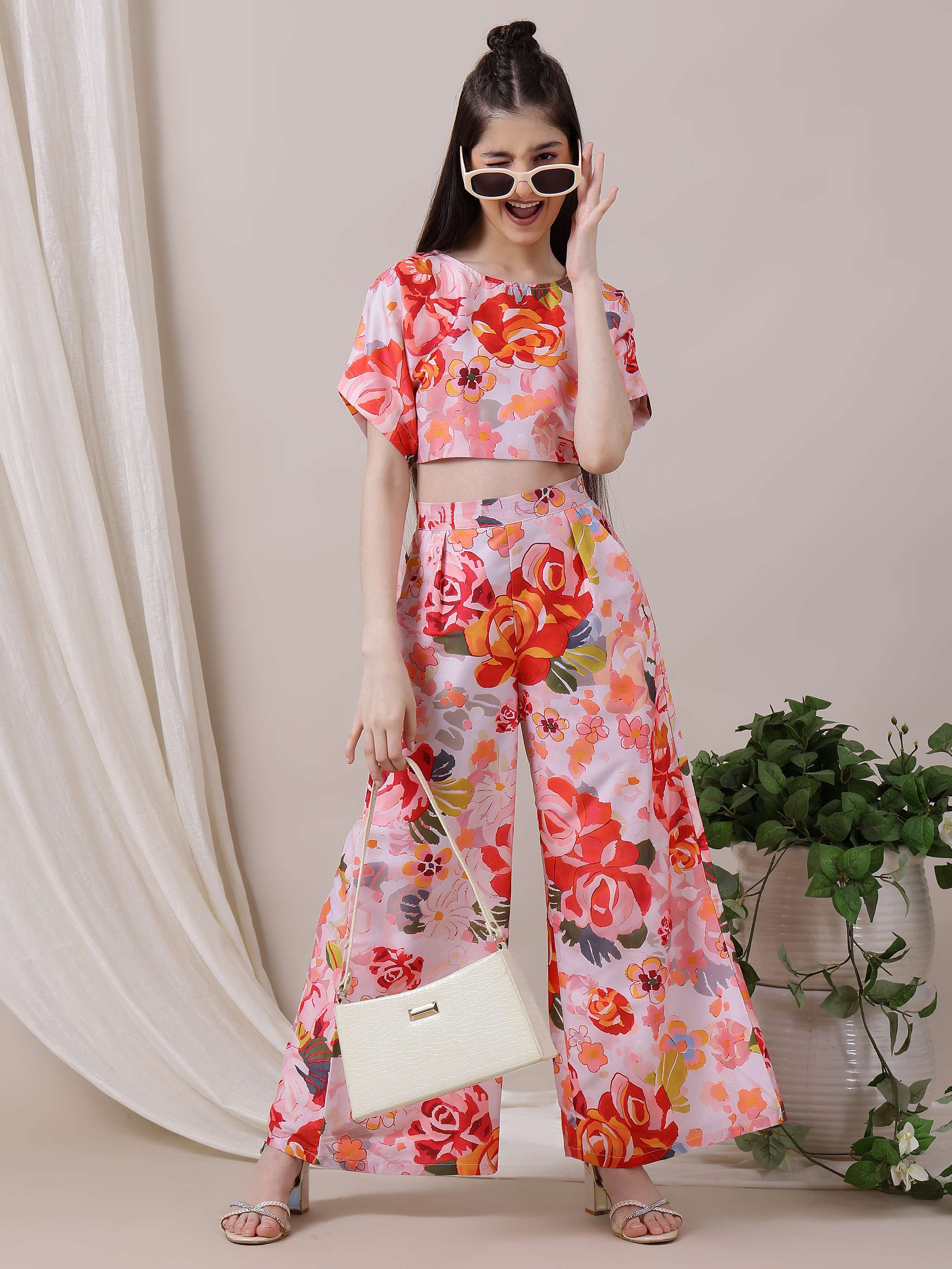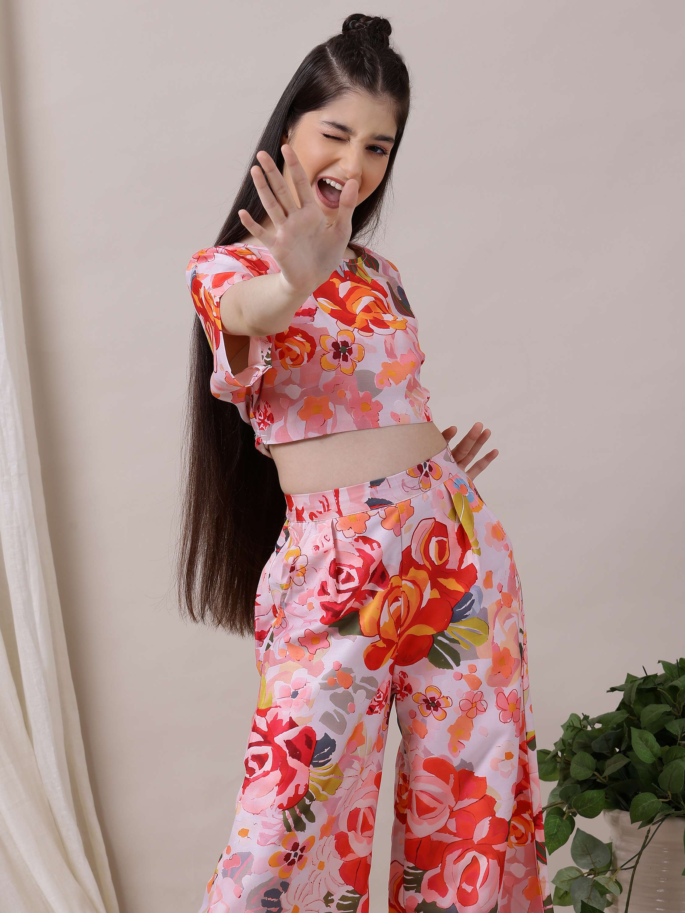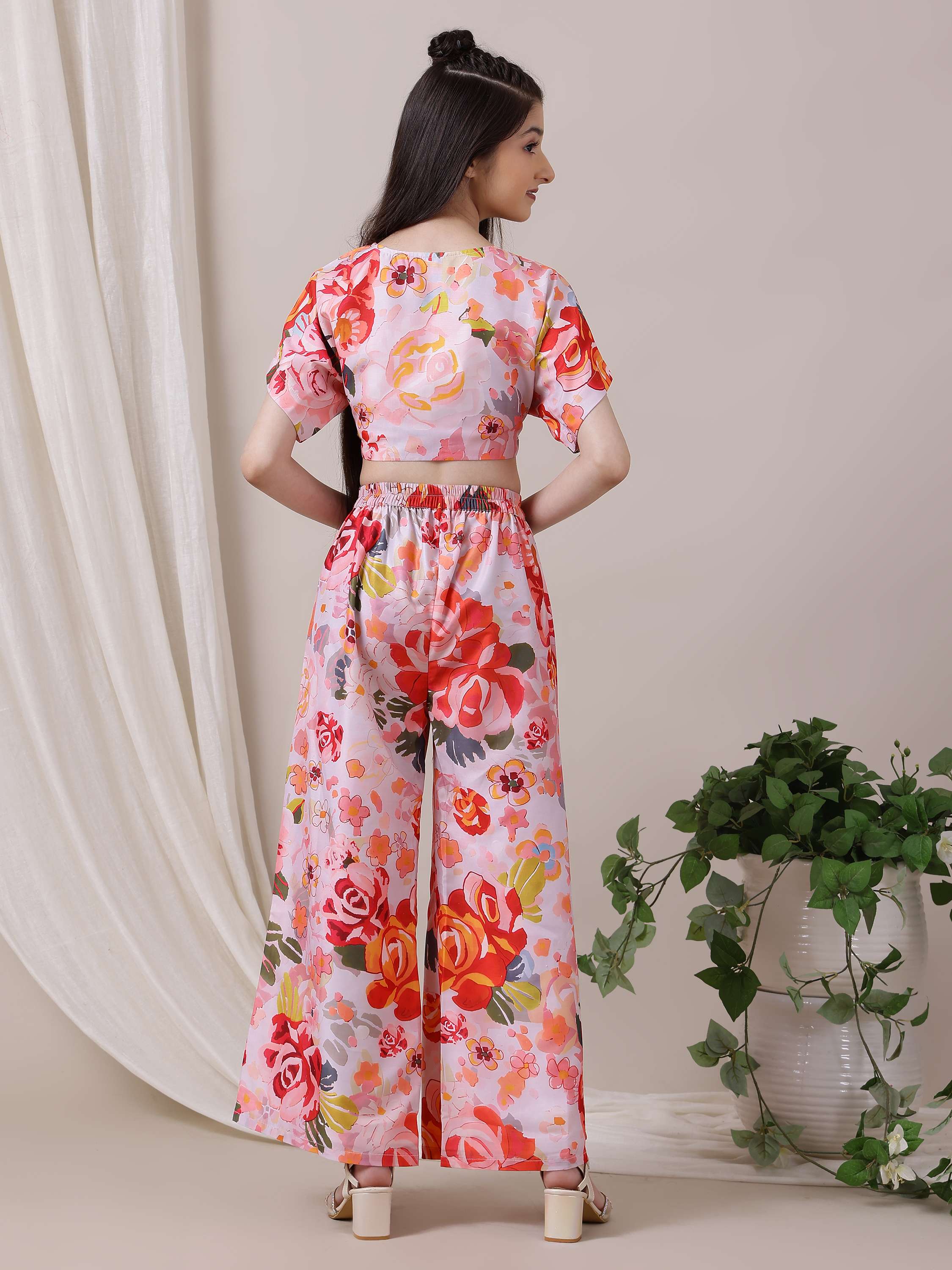 Upgrade your little girl's wardrobe with this stylish Girls Printed Top With Palazzos Set. The pink and red printed top features a v-neck and short sleeves, while the matching palazzos have a convenient slip-on closure. Made with comfortable and high-quality materials, this set is perfect for everyday wear. Plus, it's easy to care for with a simple dry clean. Get your hands on this regular fit set today for a fashionable and hassle-free look!