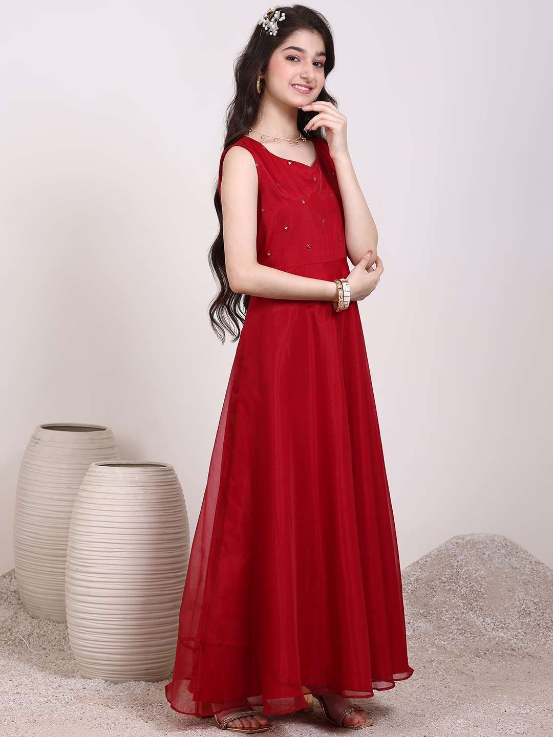 Girls Sequinned Embellished Ethnic Maxi Dress