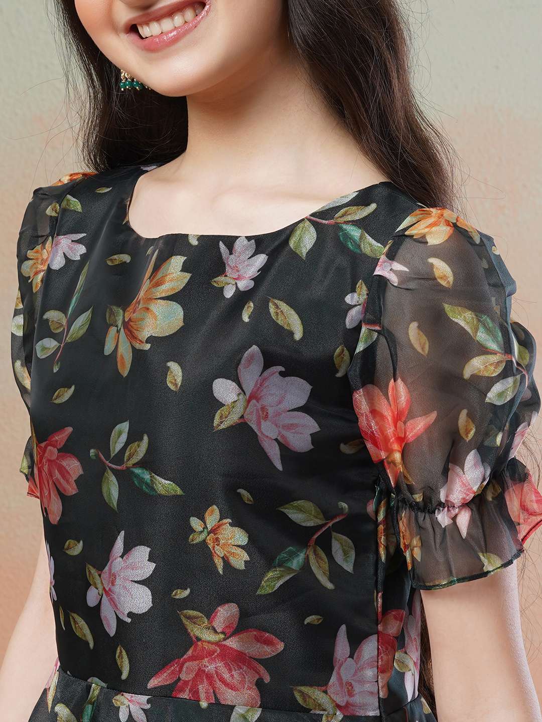 This green ethnic dress features a beautiful floral print and a flattering fit and flare shape. With a boat-neck and short regular sleeves, it offers both comfort and style. The flared hem and zip closure complete the look, making it the perfect addition to any wardrobe.