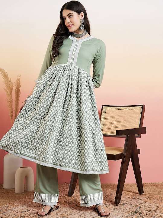 This beautiful Green V-Neck Floral Embroidered Chikankari Pure Cotton Anarkali Kurta with Palazzos is perfect for any occasion. The floral embroidery and chikankari detail add a touch of elegance to the kurta, while the pure cotton fabric ensures comfort. The accompanying palazzos also feature delicate embroidery and a partially elasticated waistband for easy wear.