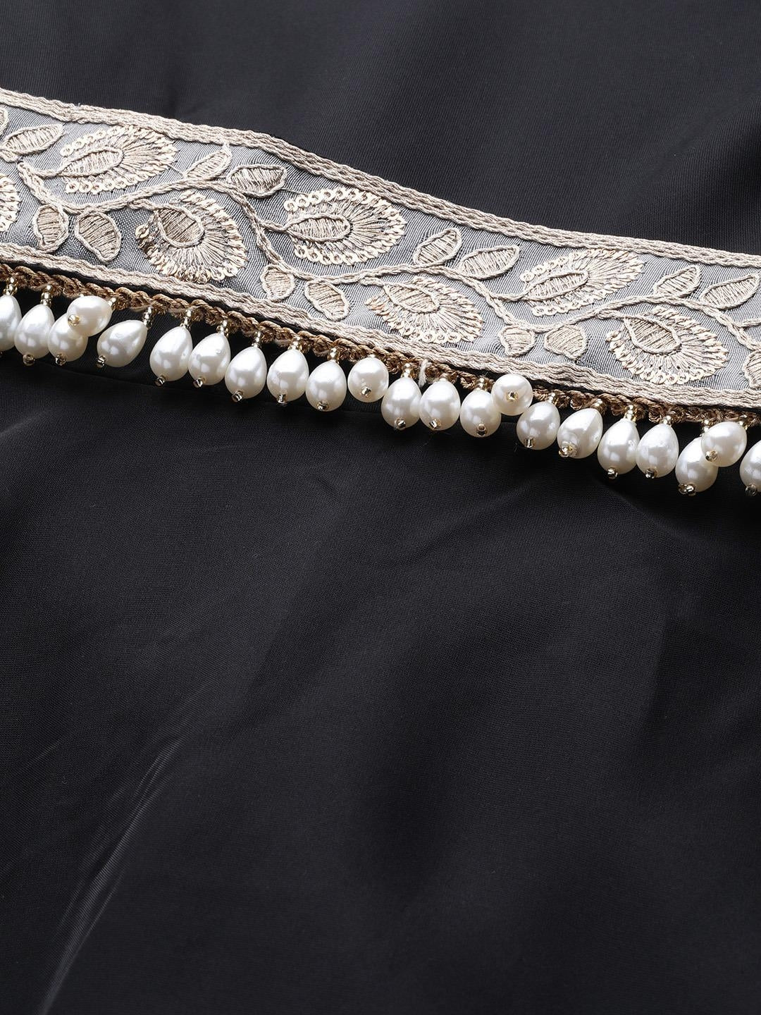 Buy pretty black polyester women one-shoulder maxi dress with attached dupatta online on Inddus at best price with free shipping worldwide.