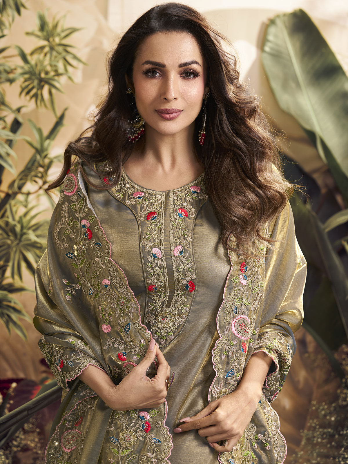 Malaika Arora Women Floral Embroidered Regular Kurta with Trousers & With Dupatta