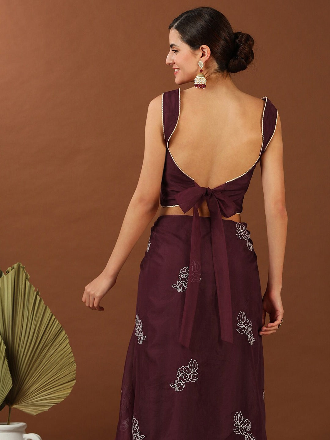 This Maroon Floral Embroidered Organza Saree features delicate floral embroidery and a stunning embroidered border. The maroon and white color combination adds a touch of elegance to any occasion. The saree includes an unstitched blouse piece, allowing for a perfect fit. Create a mesmerizing look with this beautiful saree.