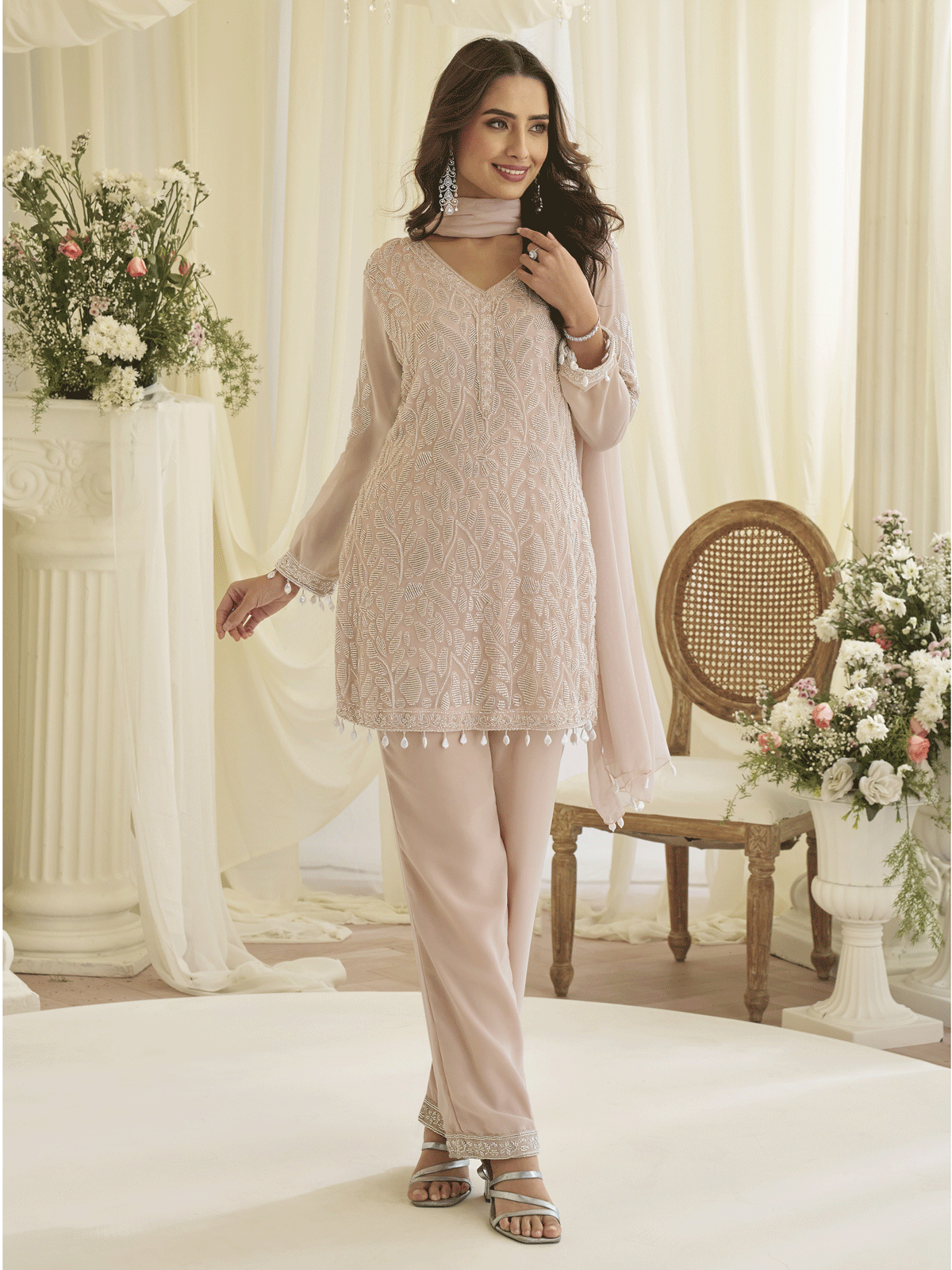 Embrace timeless elegance with this Mauve Pant Style Salwar Suit, expertly crafted from premium Chinnon silk and Georgette for a luxurious drape. Meticulously adorned with delicate bead embroidery, this piece radiates refined sophistication perfect for Eid celebrations and special occasions. The graceful silhouette combines traditional craftsmanship with contemporary styling, ensuring you stand out with understated glamour. Ideal for those who appreciate quality fabrics and intricate detailing, this salwar suit delivers both comfort and distinctive style for your most memorable moments.
