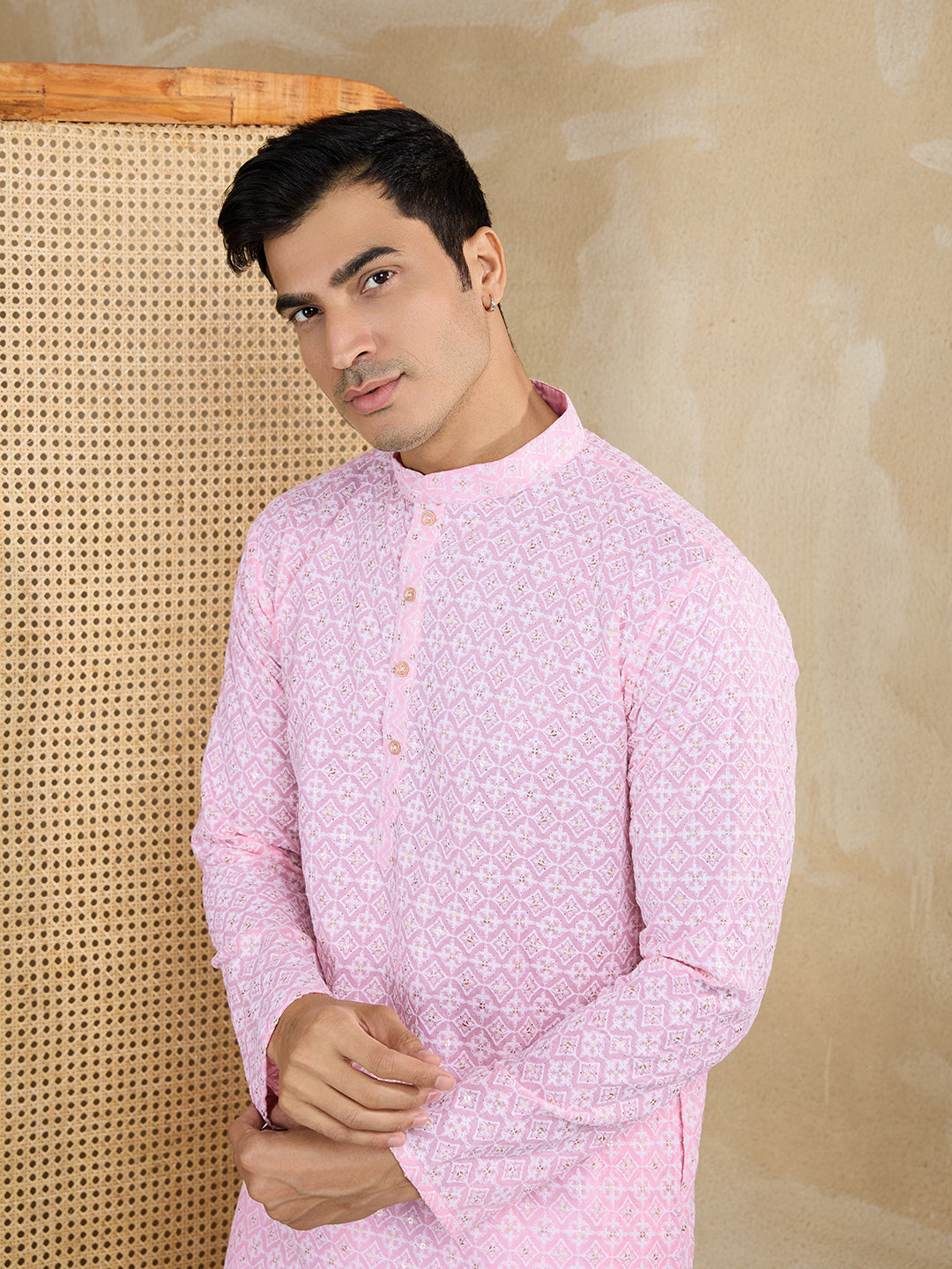 Ethnic Motifs - Embroidered - Pink Kurta