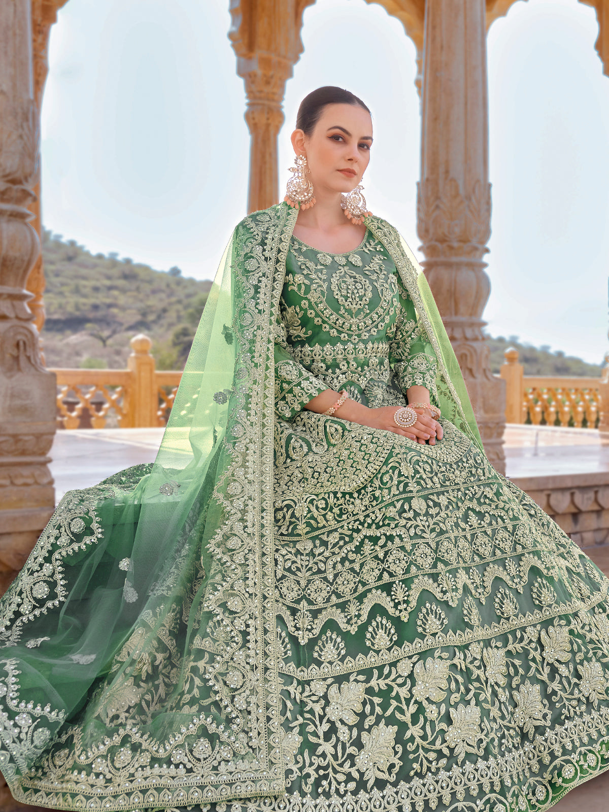 Embrace elegance with the Mint Green Cording Thread Embroidery Designer Anarkali Suit. Its exquisite combination of resham thread, zari, and crystal stones adds a touch of luxury to this soft net flared anarkali gown. The matching silk santoon pants and dupatta complete the look for a mesmerizing Eid ensemble. Elevate your ethnic style with this stunning anarkali suit.