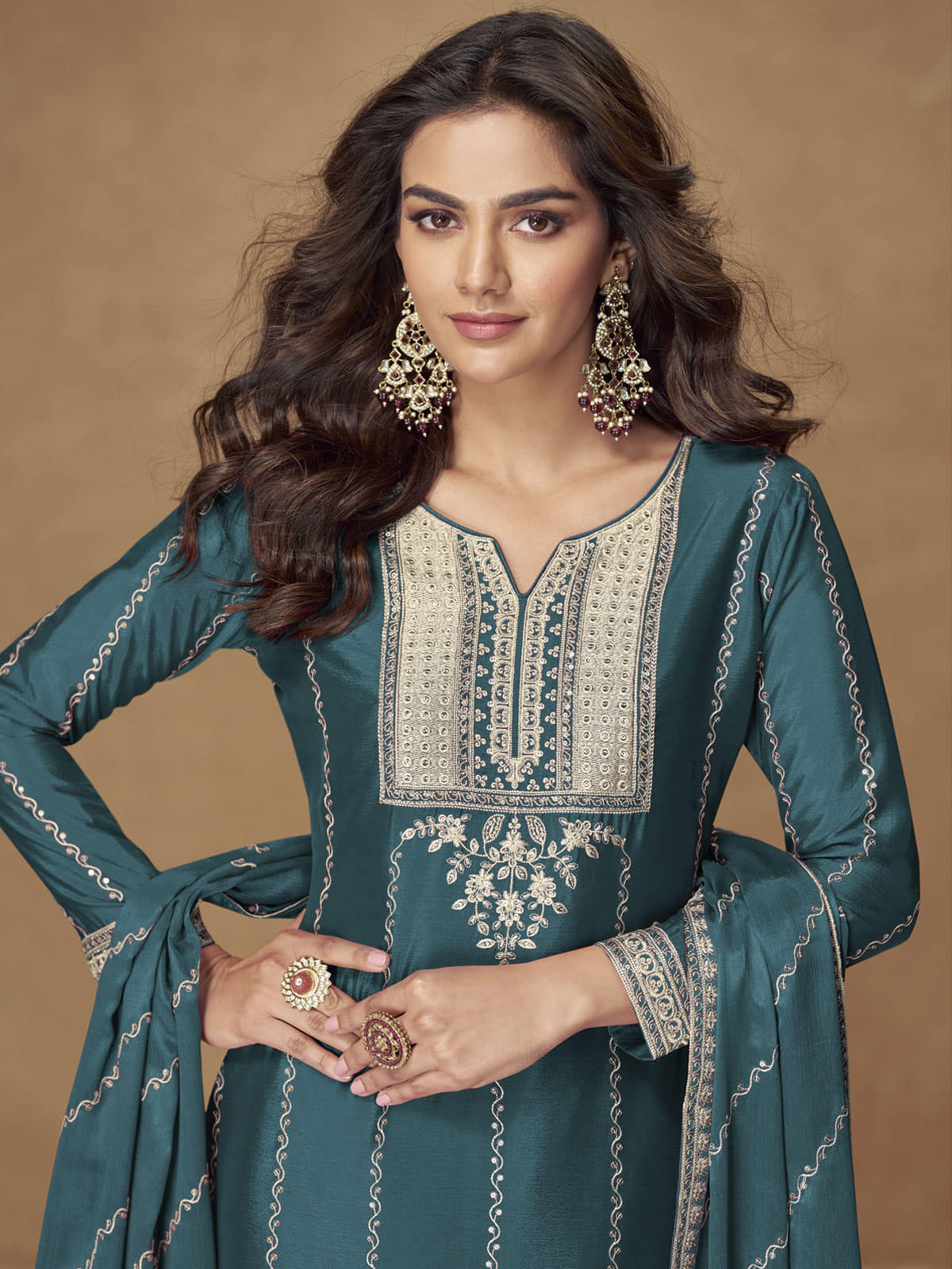 Slip into the luxurious comfort of the Morpeach Chinon Embroidered Work Salwar Suit, crafted from soft chinon and silk fabrics. This elegant ensemble features intricate embroidery that enhances its graceful appeal, making it perfect for special occasions. The suit comes complete with a matching dupatta, offering a cohesive and refined look. Experience both style and comfort effortlessly with this beautifully designed attire.