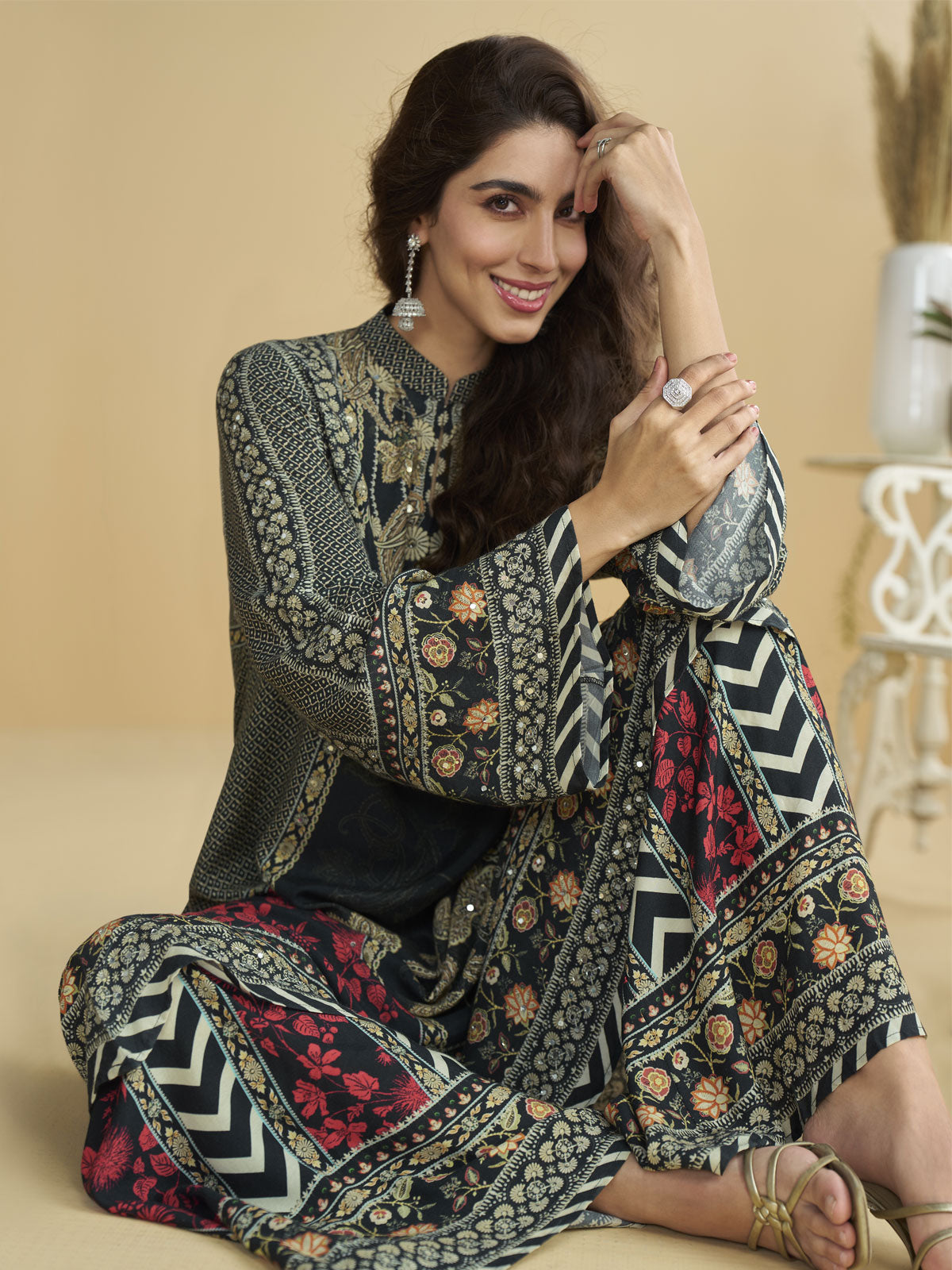 Crafted from premium crepe silk, this salwar suit showcases a sophisticated multi-colour palette that effortlessly transitions from casual gatherings to formal occasions. The fluid drape of crepe silk ensures comfort throughout the day while maintaining an elegant silhouette. The traditional salwar cut provides ease of movement, making it an ideal choice for those seeking both style and practicality. Perfect for adding versatility to your ethnic wardrobe with its refined colour coordination and superior fabric quality.