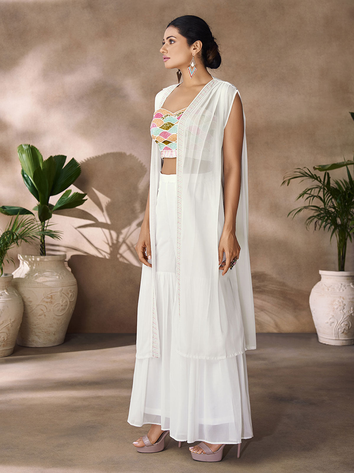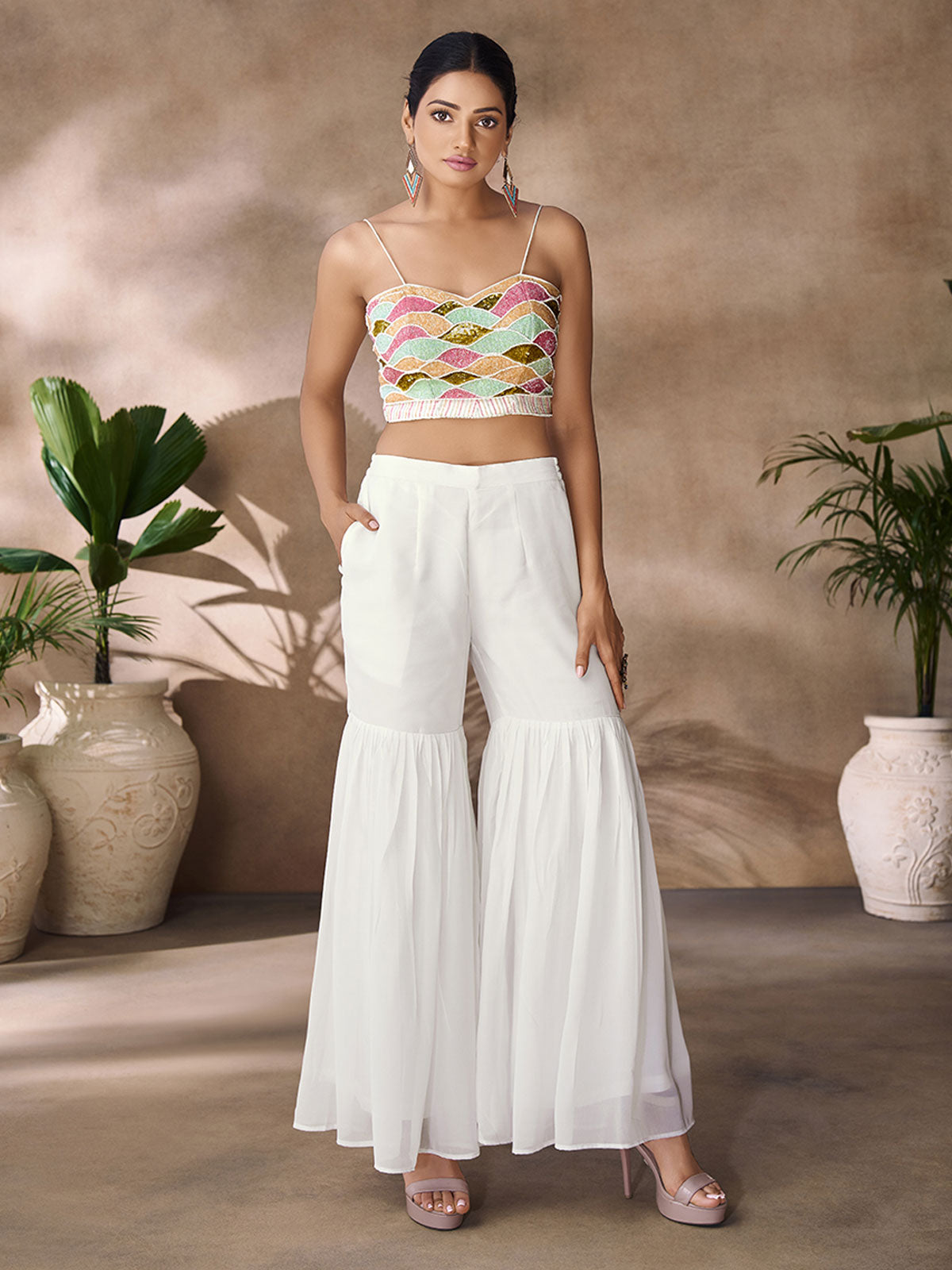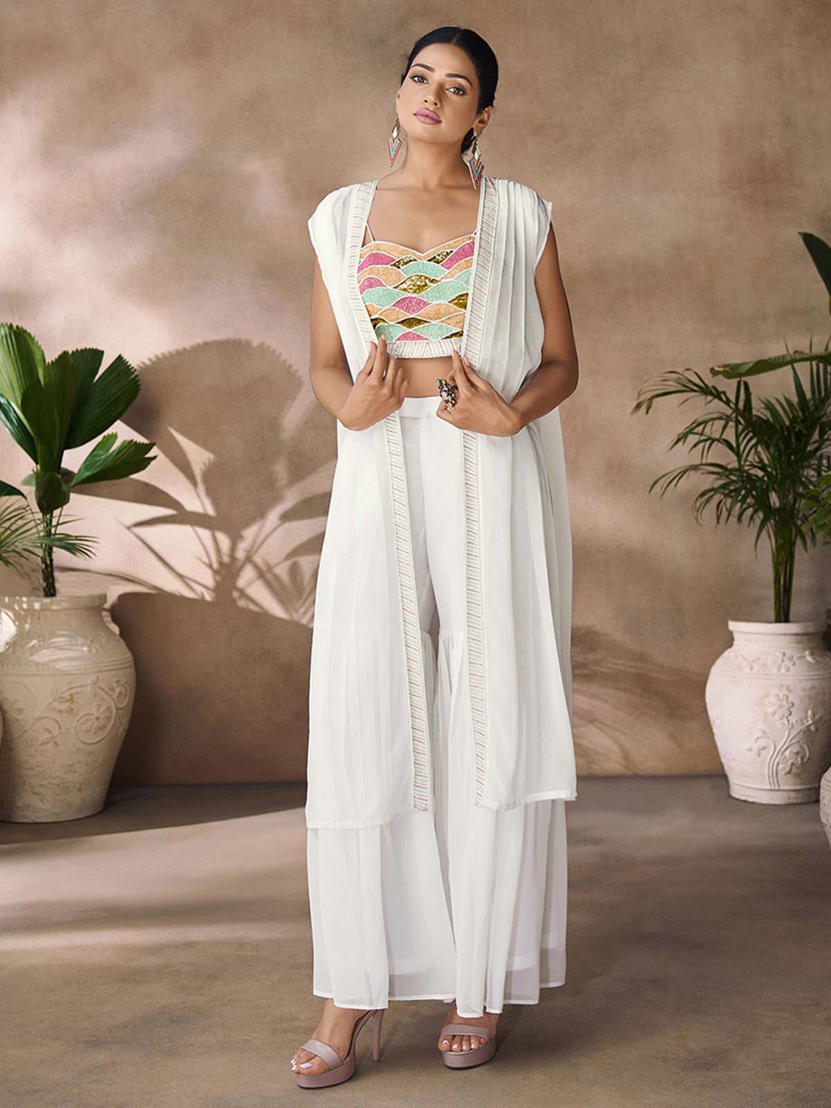 Expertly crafted from lightweight georgette, this multicolor casual kurti is perfect for making a bold fashion statement. The intricate fancy work adds dramatic flair to this versatile piece. Please note that there may be slight variations in color, fabric, and work, and the model images are for representation only.