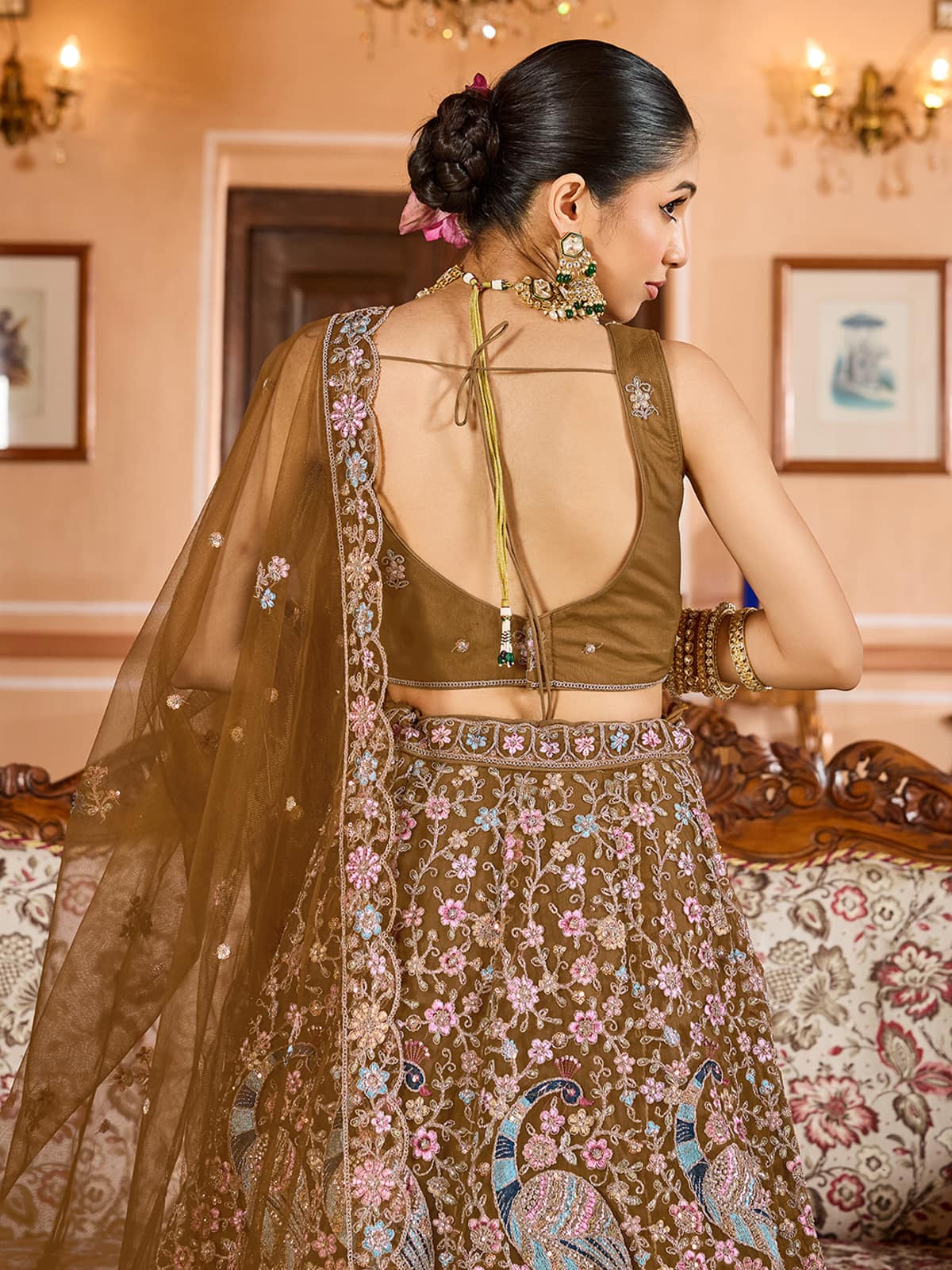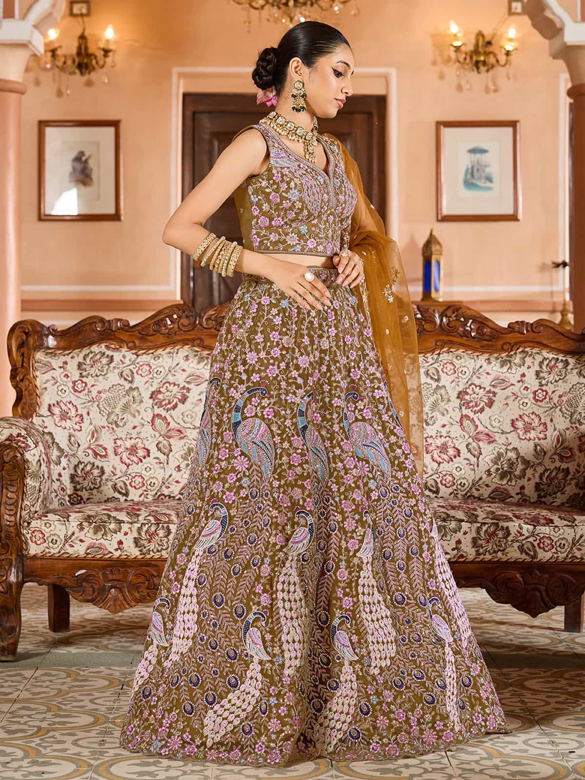 Elevate your ethnic wardrobe with this stunning mustard lehenga set, crafted from premium net fabric. The semi-stitched lehenga features intricate sequin and stone embellishments complemented by detailed thread embroidery and cutwork borders. It arrives with a single shantoon inner, dual-layer buckram support, and a generous 3.5-meter flair for graceful movement. The coordinating sweetheart-neck blouse showcases heavy sequin work, coding, and thread embroidery on net fabric with an attached shantoon lining. Complete the ensemble with the matching mustard net dupatta, adorned with elaborate coding and embroidered cutwork detailing. Perfect for weddings, celebrations, and special occasions.
