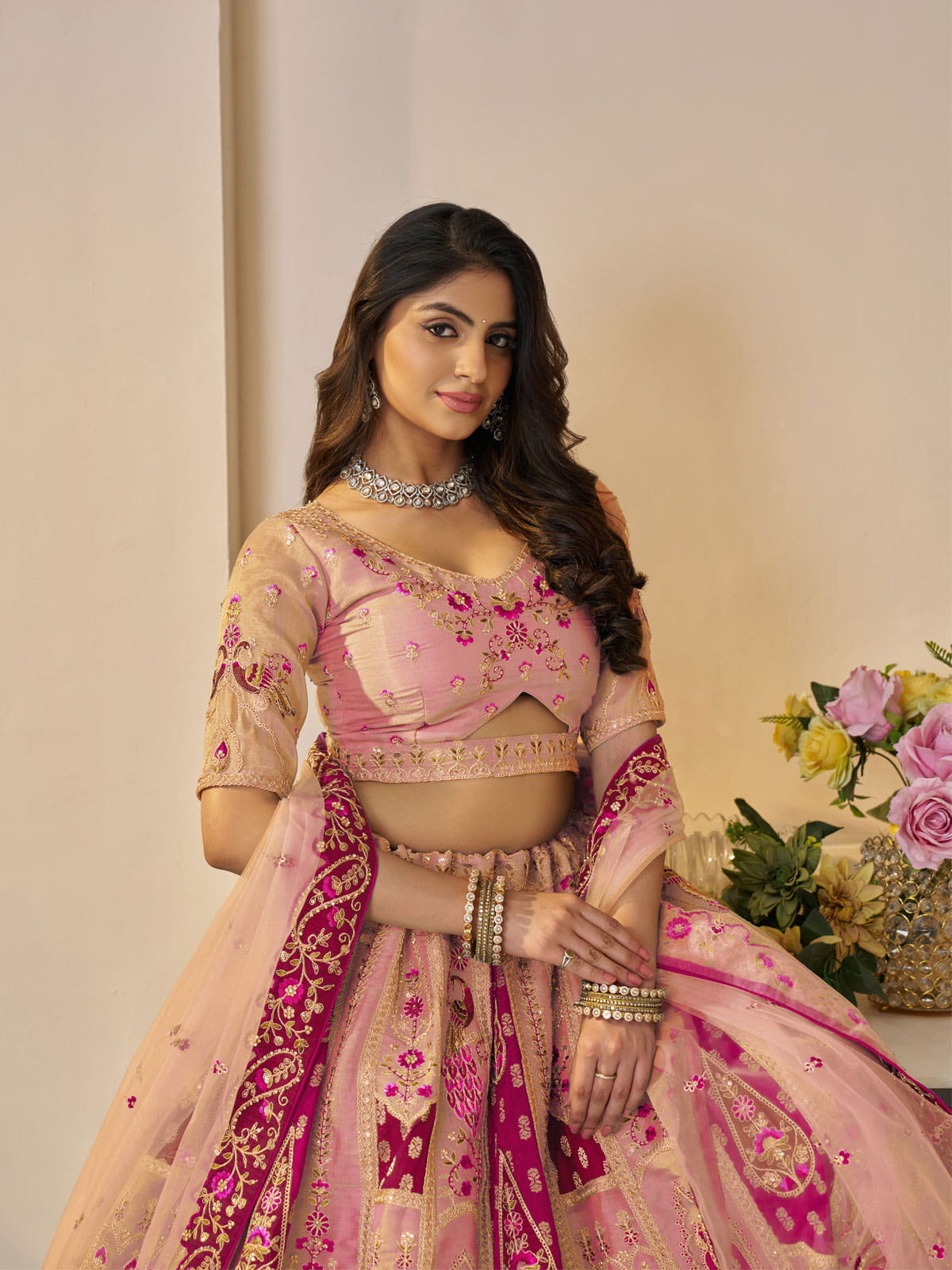 Elevate your bridal party ensemble with this exquisite orange embroidered Banarsi lehenga. Masterfully crafted from premium art silk, this lehenga showcases intricate hand embroidery, luminous sequin work, and meticulous thread artistry. The complete set includes a coordinating blouse and flowing dupatta, creating a harmonious silhouette that perfectly balances traditional craftsmanship with contemporary eleganceƒ??an ideal choice for bridesmaids seeking sophisticated grace.
