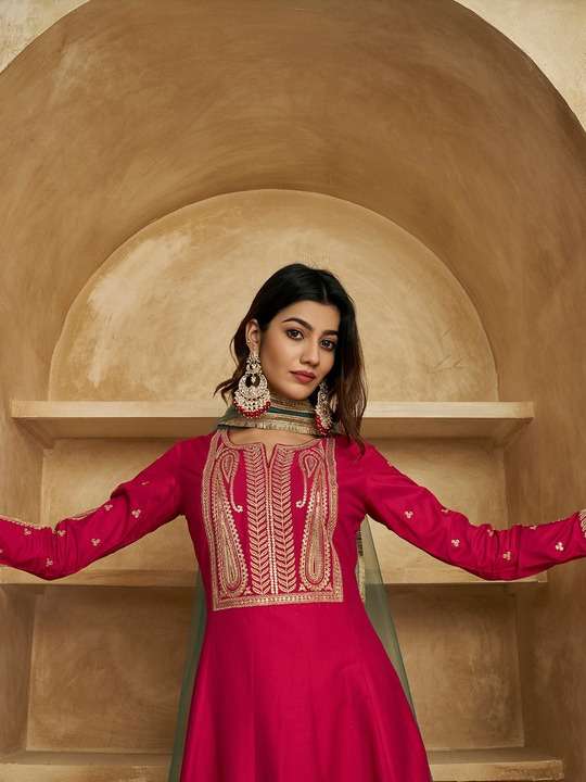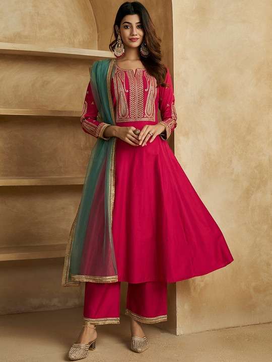 Paisley Yoke Design Regular Pure Silk Kurta with Palazzos & Dupatta