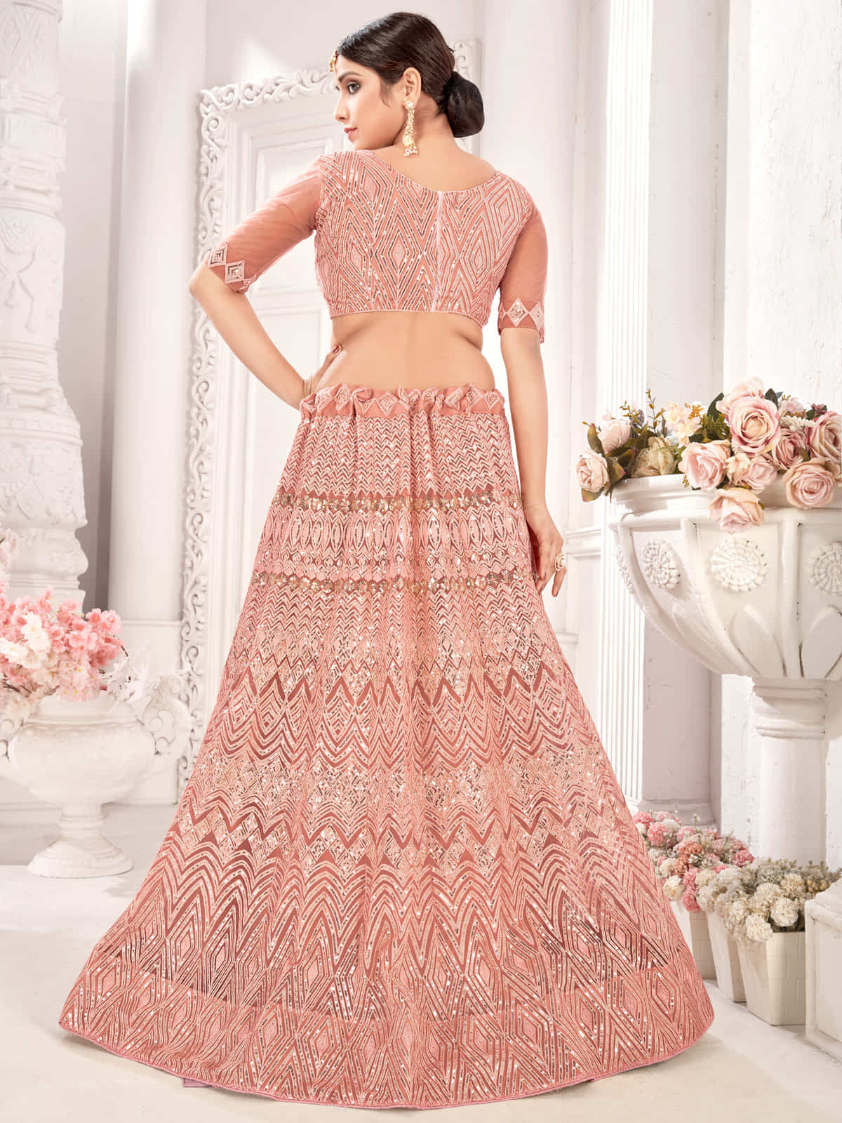 Discover elegance in our Peach Embroidered Net Lehenga. Enhanced with intricate Resham, Zari, Sequins, and Patch Border Work, this unstitched net attire is customizable in size and comes with a matching net choli and dupatta. Perfect for any occasion, complete your look with customizable waist and hip sizes and a flattering 42-inch length. (Accessories not included.)