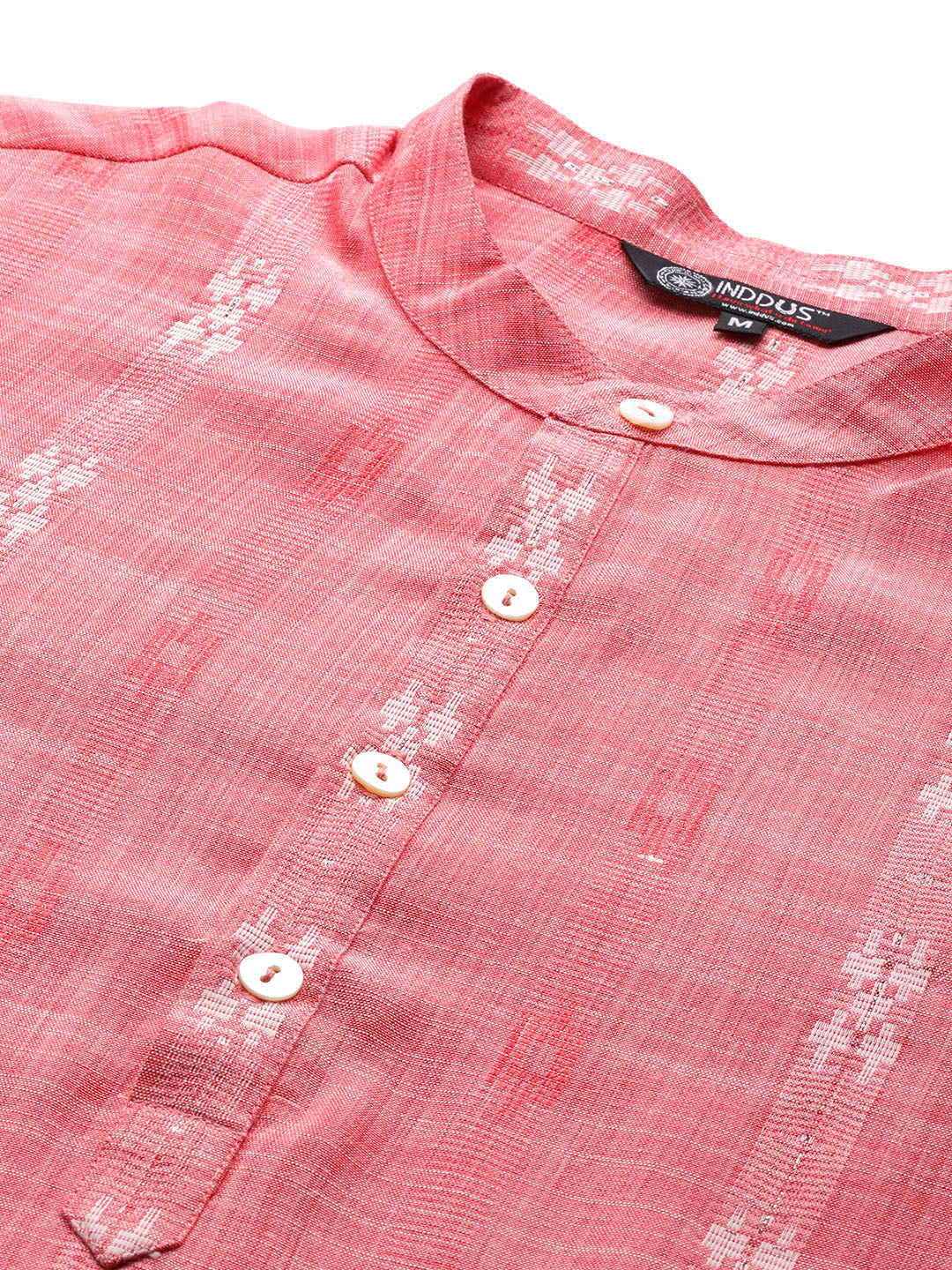 This Peach Striped Kurta with Churidar is crafted from a light cotton blend fabric to give you a comfortable fit. It features a square shape with a popular band collar, long regular sleeves, and a calf length with a straight hem. The woven striped design adds style and the matching Churidar has a partially elasticated waistband with a slip-on closure. A timeless style, perfect for everyday wear.